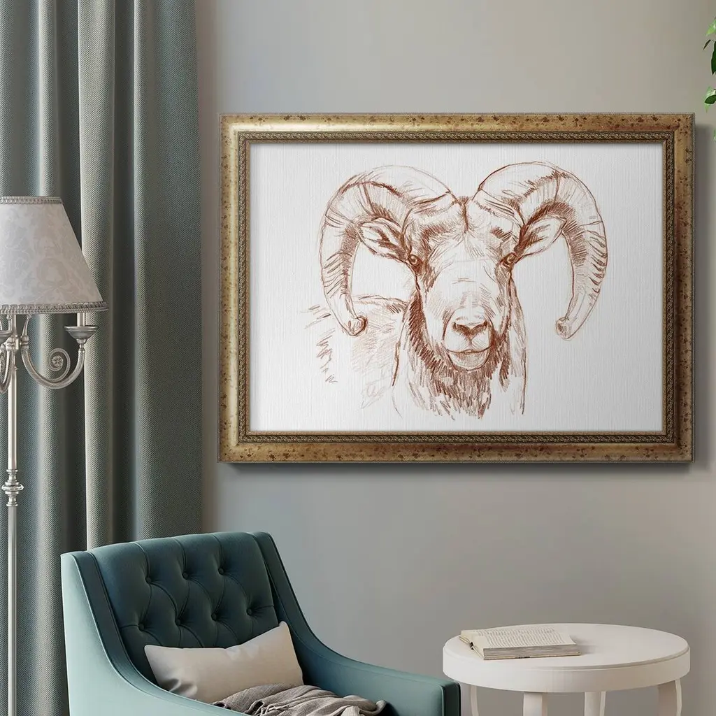 Big Horn Sheep Ii Premium Framed Canvas- Ready To Hang - 18x27 - Gold