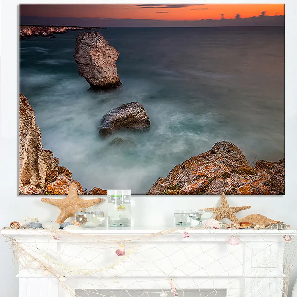 "Big Rock Formations Near Tulenovo" Beach Canvas Wall Art, 40"x20"
