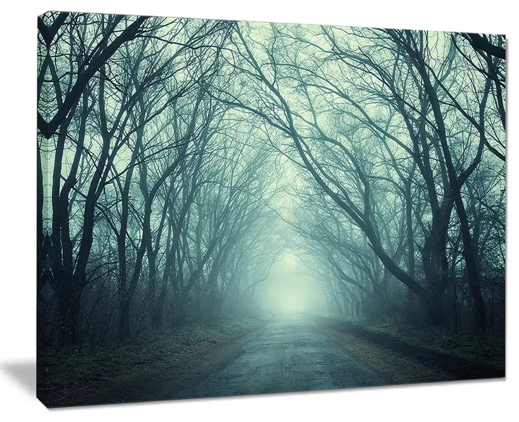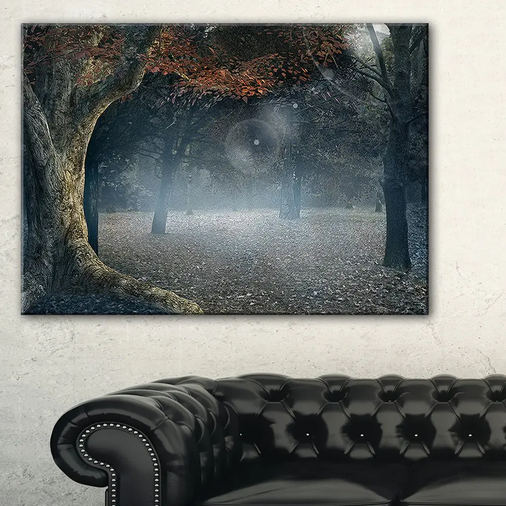 The Big Trees in Dark Foggy Forest canvas art print is sure to make an impression on anyone who sees it. This artwork is gallery wrapped around a 1-inch solid wood frame and arrives carefully packaged and entirely ready to hang on the wall. Design Art only uses the highest resolution and pigments to ensure a crisp colorful print that is never faded or pixelated. This artwork is sure to be a conversation starter in any home or office.