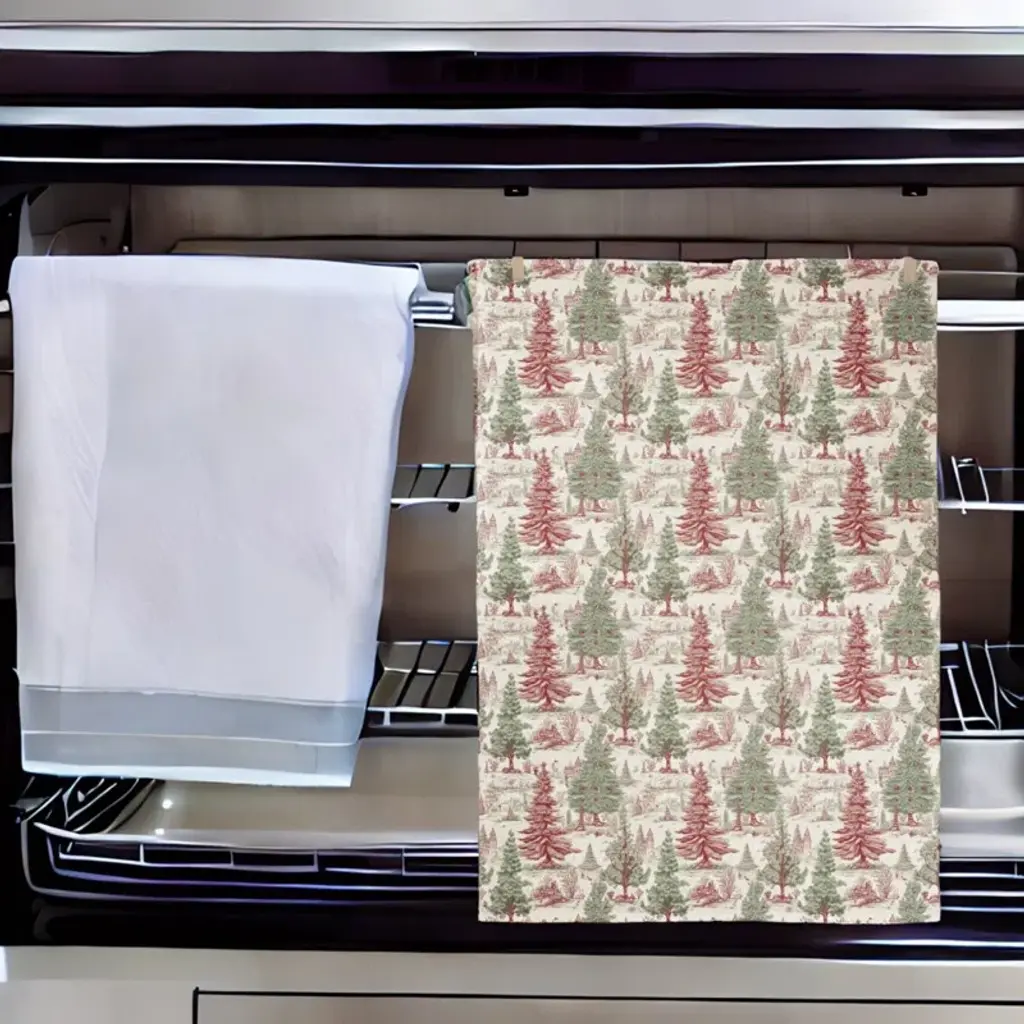 Birch Lanetm Digitally Printed Set Of 2 Holiday Kitchen Towels - Green Toile, 20" X 30" (Set Of 2)