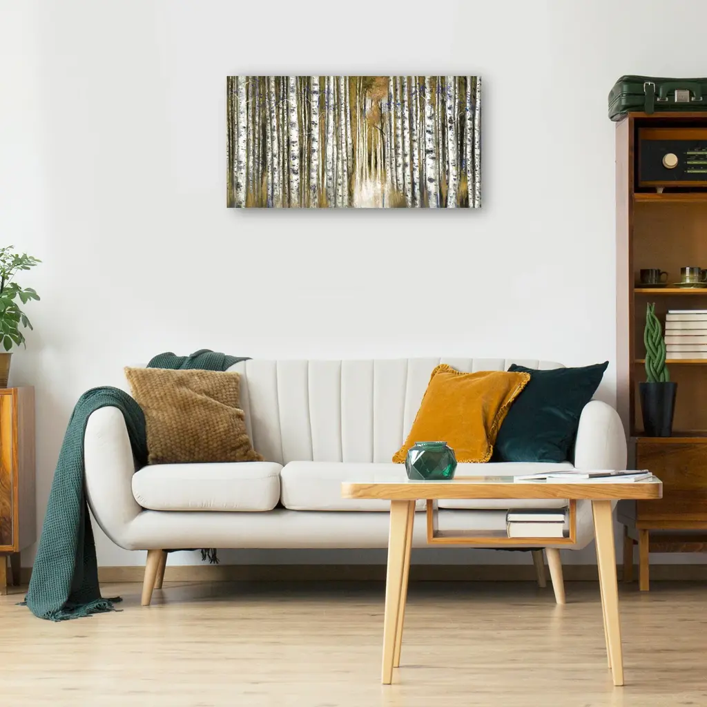 Birch Moment Gold by Sandy Doonan is produced with printing that covers the entirety of the canvas for a sleek and stylish museum-quality look. Our framed prints are made by expert craftsmen who strive to make each canvas the masterpiece that your home deserves. Each of our framed canvas art prints is hand-crafted and made-to-order to give it a high quality and professional appearance. To ensure the clearest, most accurate depiction of the artists' original vision, we print each work of art on bright white polyester canvas, ensuring the most vivid display and precise details. Please note: colors may differ slightly due to variation in monitors. READY TO HANG - Our canvas prints come with preinstalled D-rings attached to the back of the product to make hanging and displaying your new masterpiece a breeze.