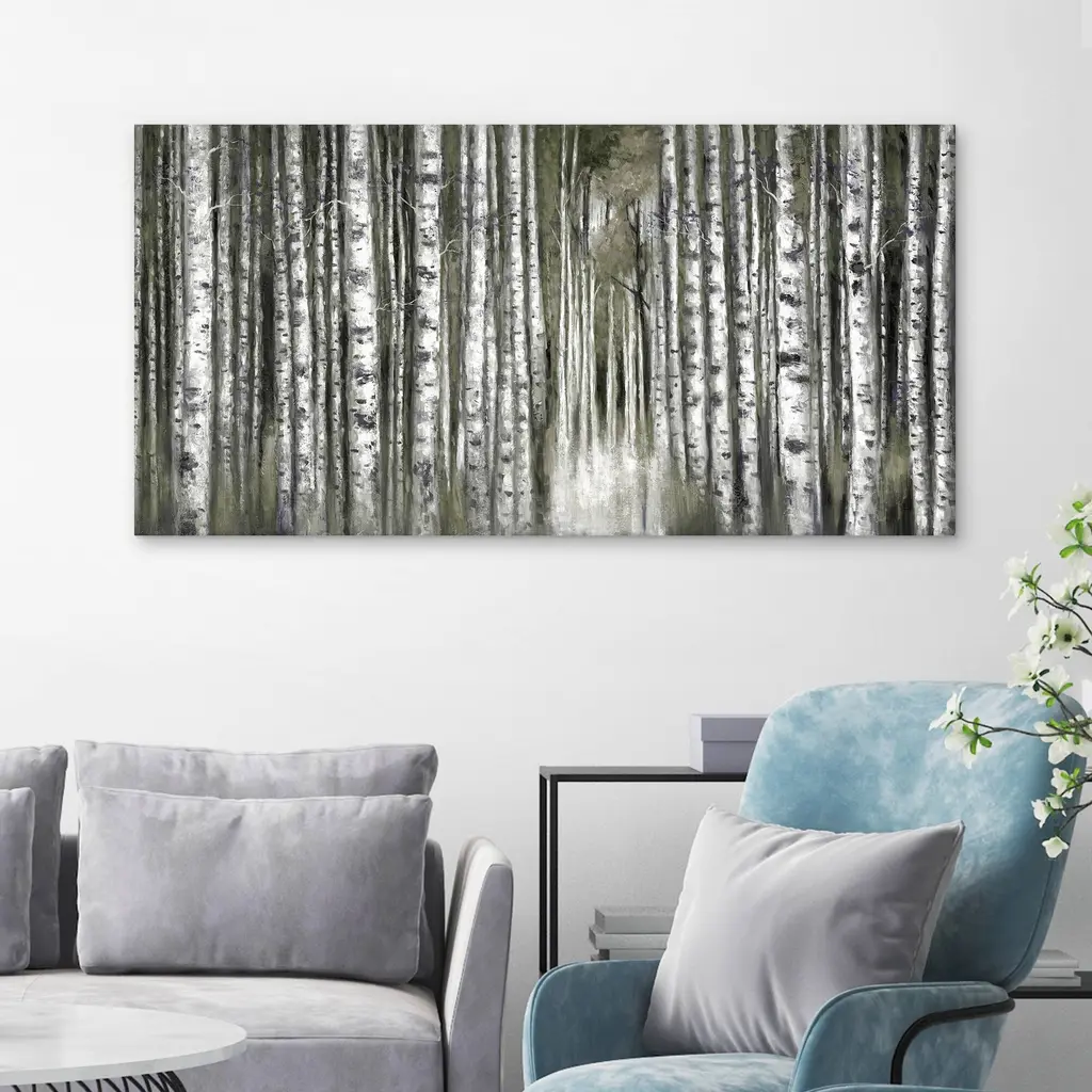 Birch Moment Grey by Sandy Doonan Canvas Art Print is produced with printing that covers the entirety of the canvas for a sleek and stylish museum-quality look. Our framed prints are made by expert craftsmen who strive to make each canvas the masterpiece