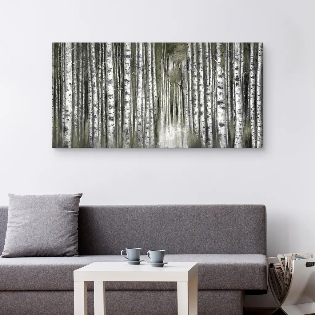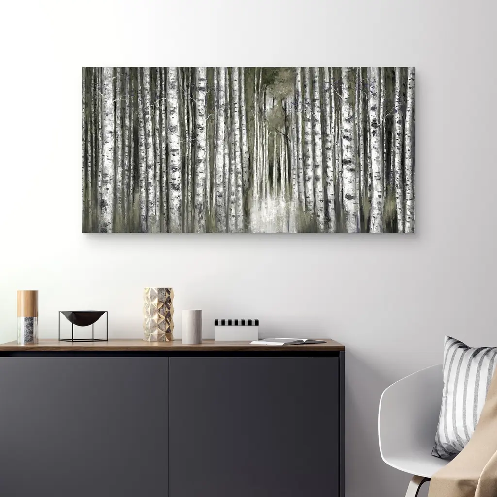Birch Moment Grey By Sandy Doonan Canvas Art Print - Green - 24 X 48