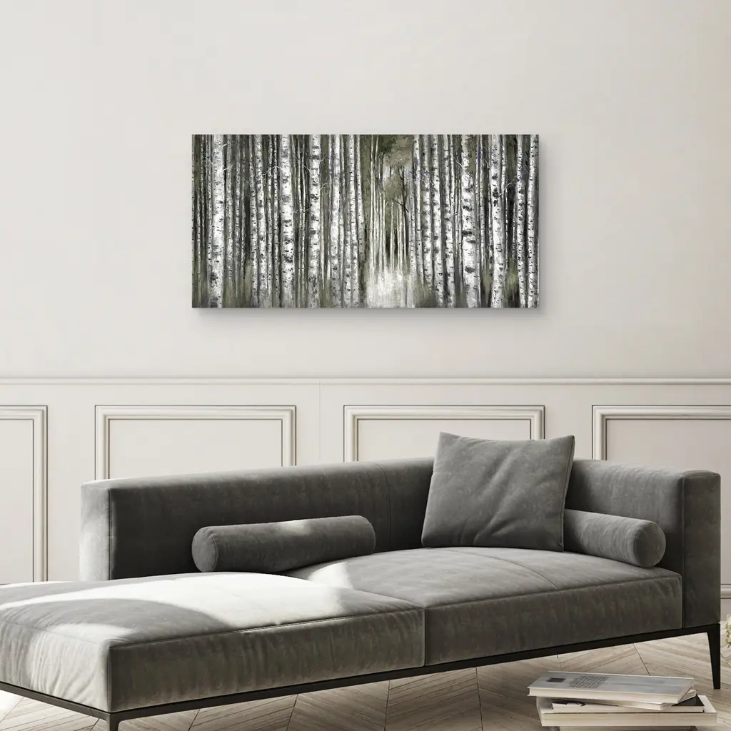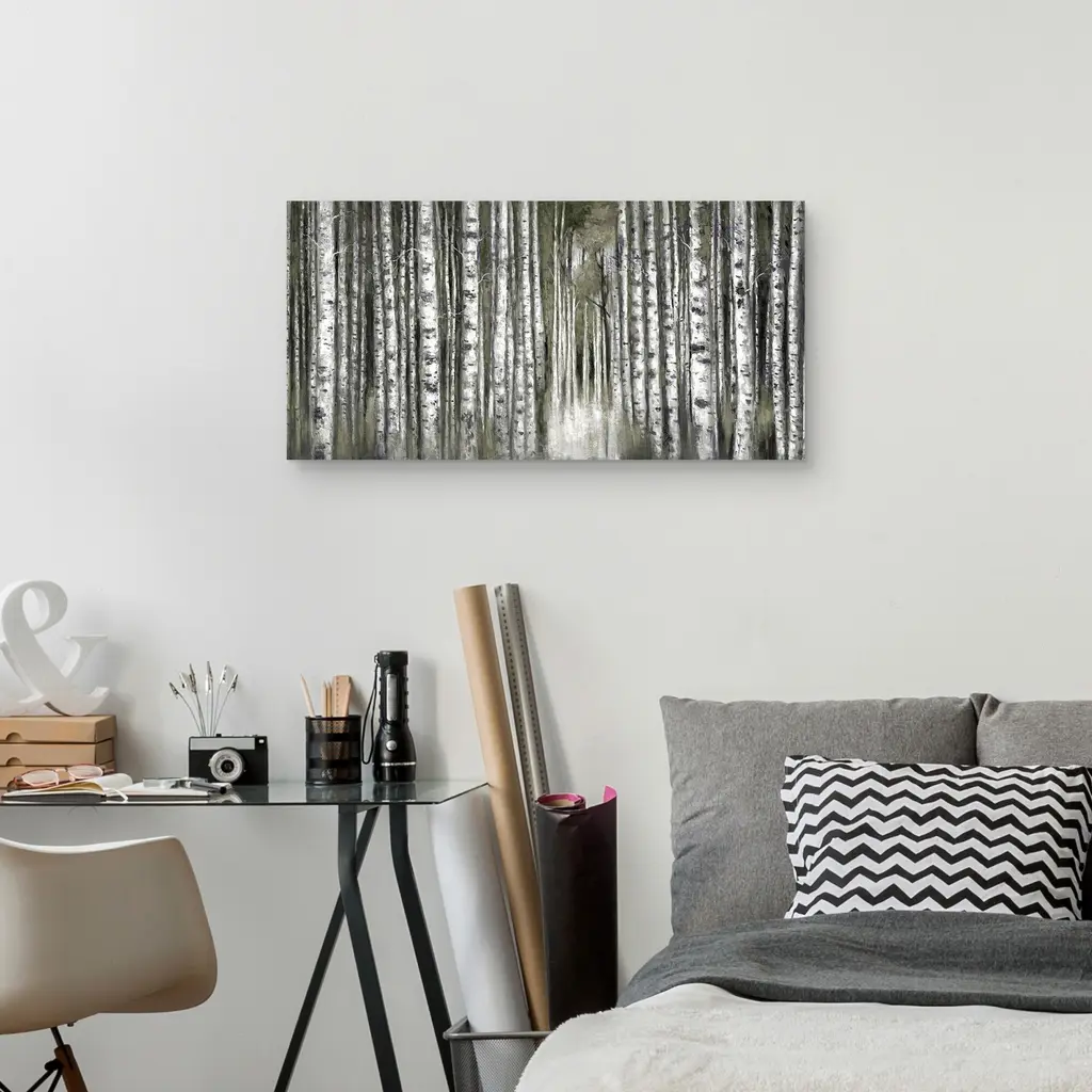 Birch Moment Grey by Sandy Doonan is produced with printing that covers the entirety of the canvas for a sleek and stylish museum-quality look. Our framed prints are made by expert craftsmen who strive to make each canvas the masterpiece