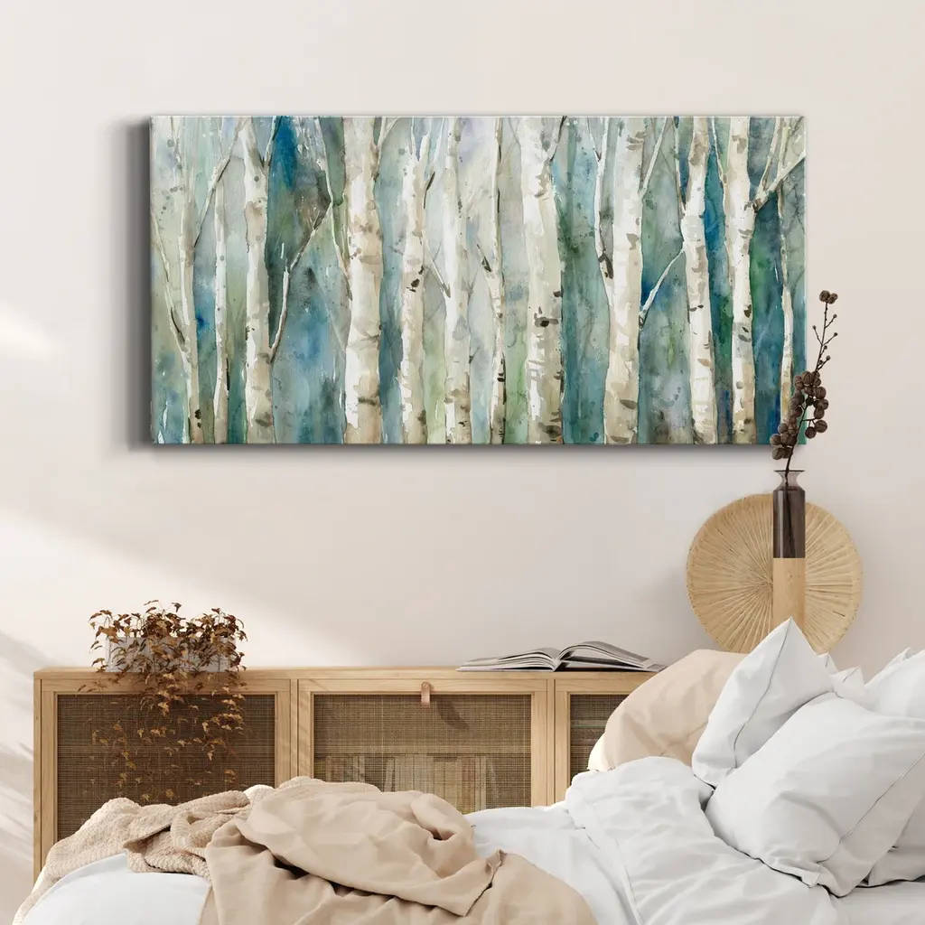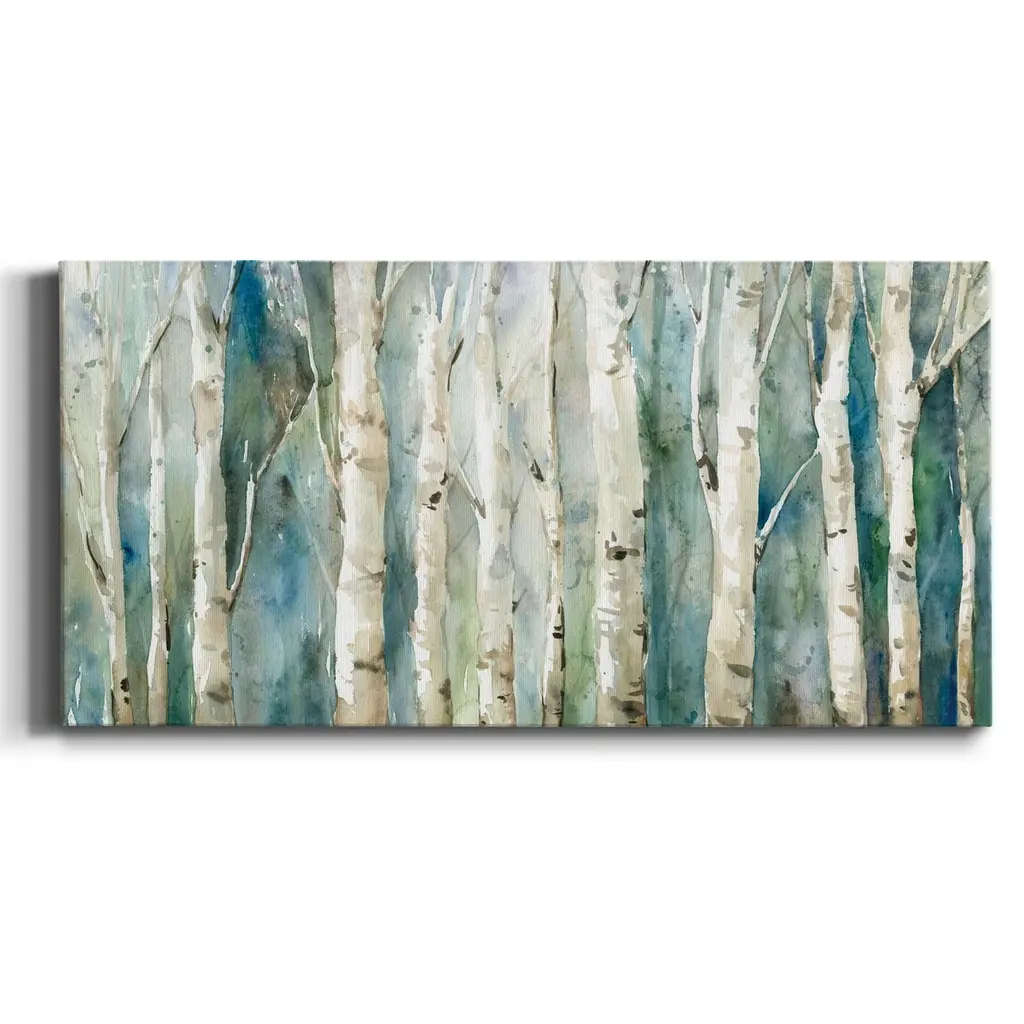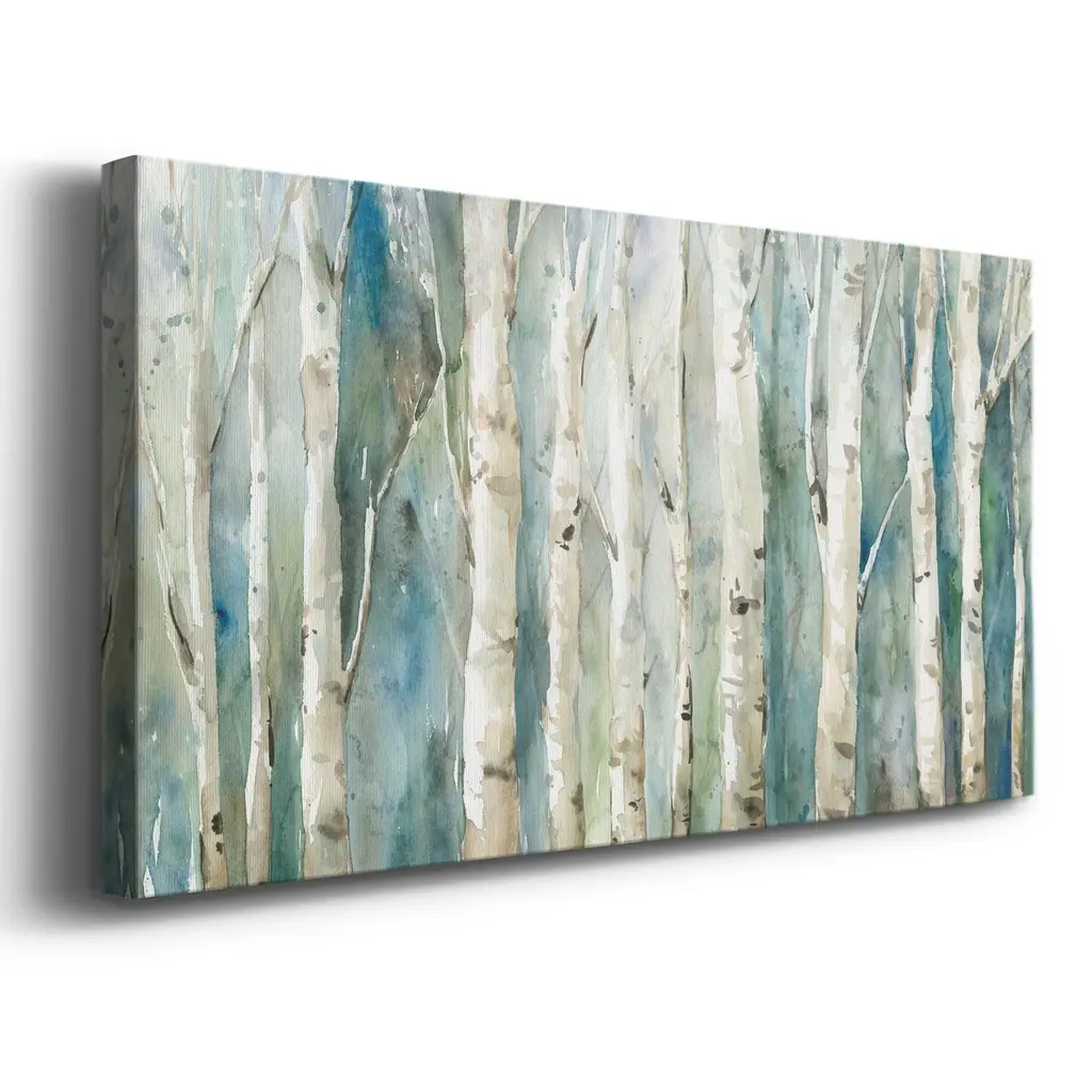 Birch River Walk- Premium Gallery Wrapped Canvas - Ready to Hang A premium hand stretched gallery wrapped canvas print created to last. Featuring a beveled a solid wood stretcher bar, each piece comes ready to hand 3 SIZES AVAILABLE 8''X16'' - Overall Size 12"X24'' - Overall Size 20''x40'' - Overall Size Each piece is made to order. Built to Last Each piece comes ready to hang Solid wood stretcher Fade and Water resistant Made domestically