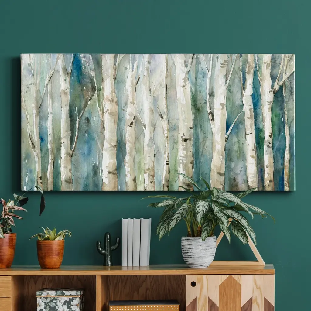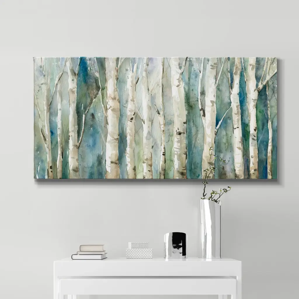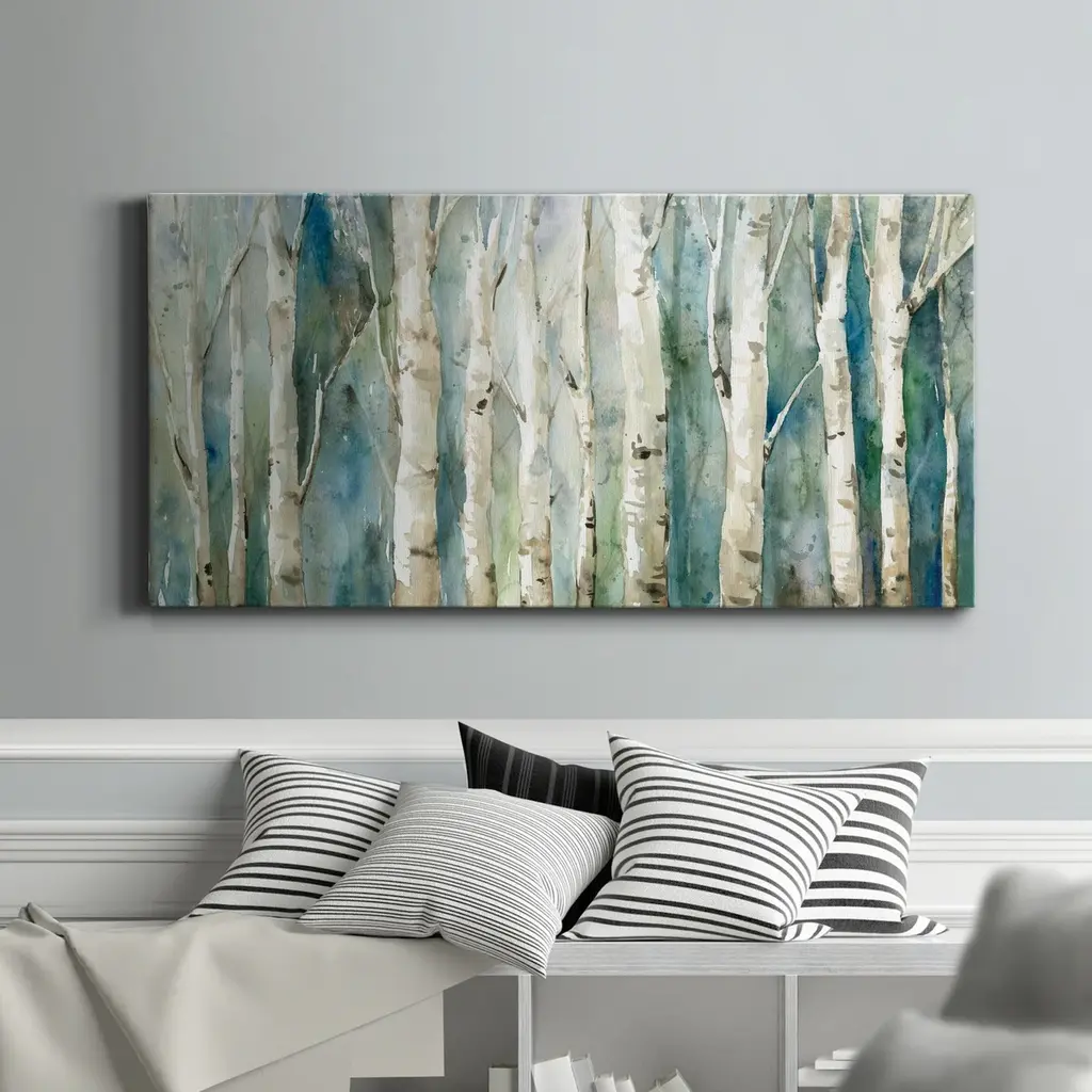 Birch River Walk- Premium Gallery Wrapped Canvas - Ready to Hang A premium hand stretched gallery wrapped canvas print created to last. Featuring a beveled a solid wood stretcher bar, each piece comes ready to hand 3 SIZES AVAILABLE 8''X16'' - Overall Size 12"X24'' - Overall Size 20''x40'' - Overall Size Each piece is made to order. Built to Last Each piece comes ready to hang Solid wood stretcher Fade and Water resistant Made domestically