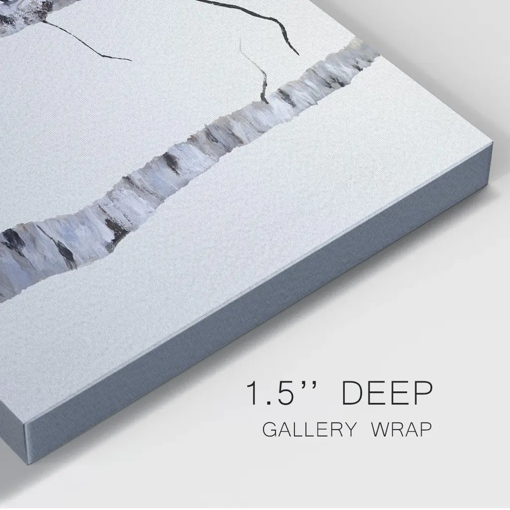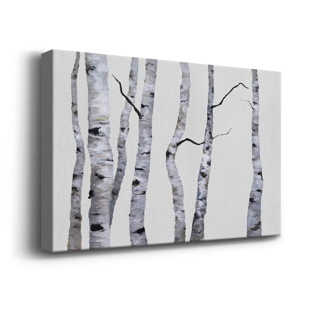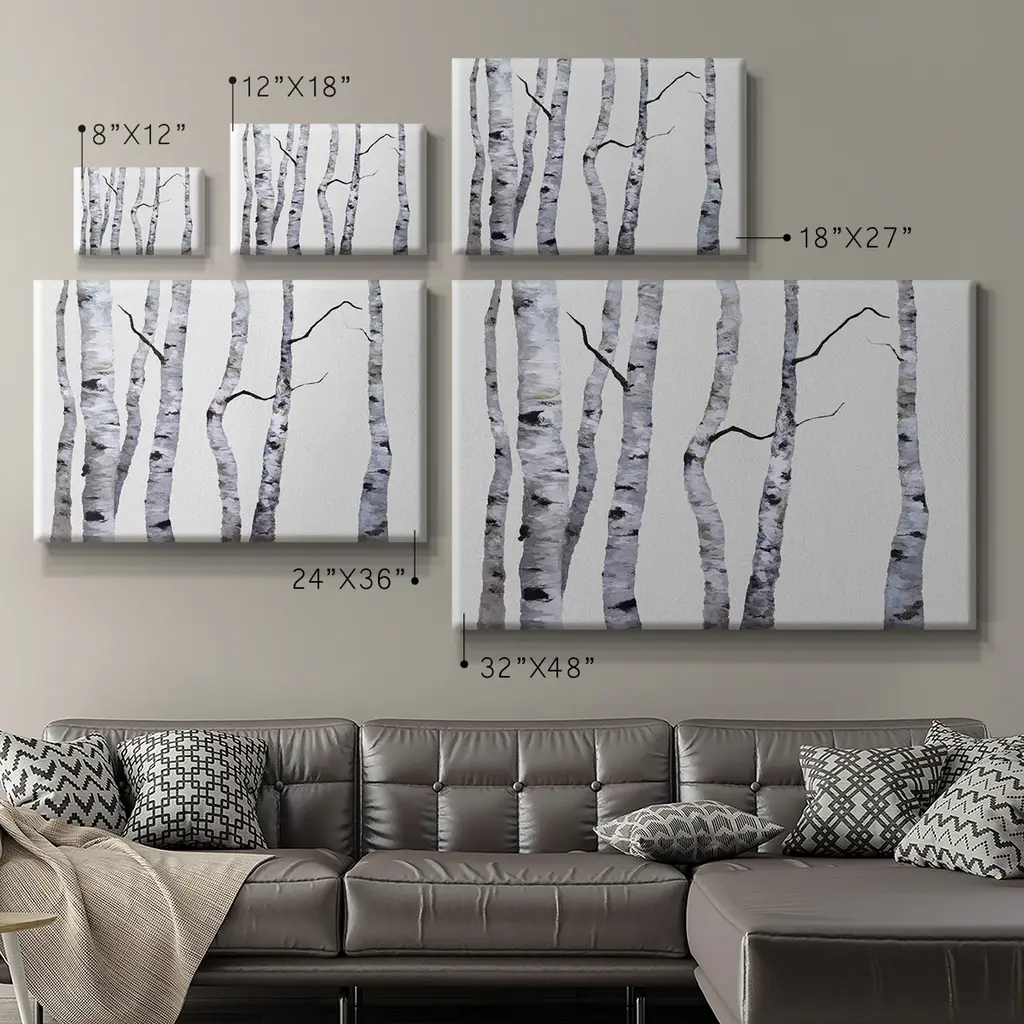 Birch Trees I Premium Gallery Wrapped Canvas - Ready to Hang A premium hand stretched gallery wrapped canvas print created to last. Featuring a beveled a solid wood stretcher bar, each piece comes ready to hand 6 SIZES AVAILABLE 8''X12'' - Overall Size 12''X18'' - Overall Size 18''X27'' - Overall Size 24''x36'' - Overall Size 32''x48'' - Overall Size 40''x60'' - Overall Size Each piece is made to order. Built to Last Each piece comes ready to hang Solid wood stretcher Fade and Water resistant Made domestically