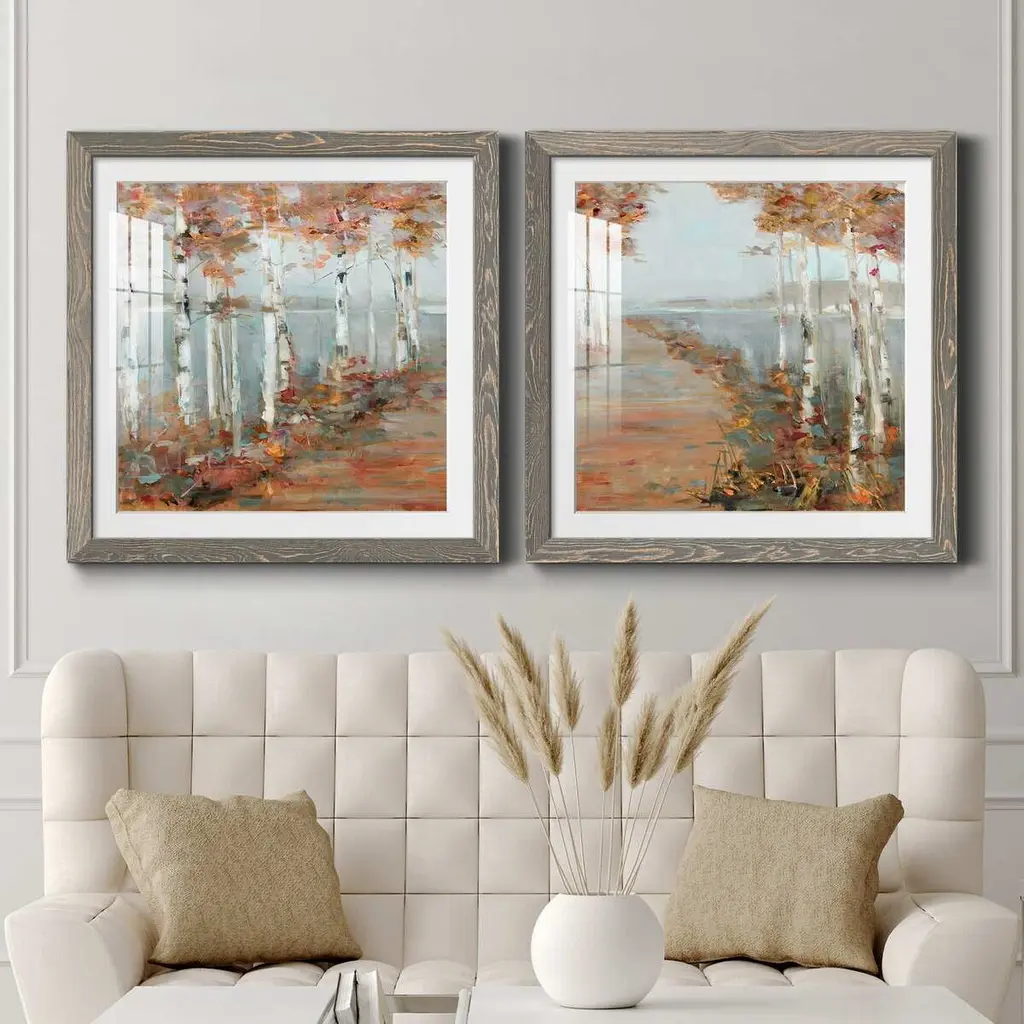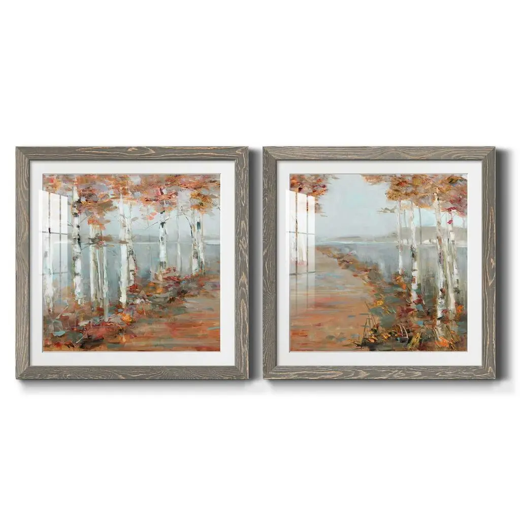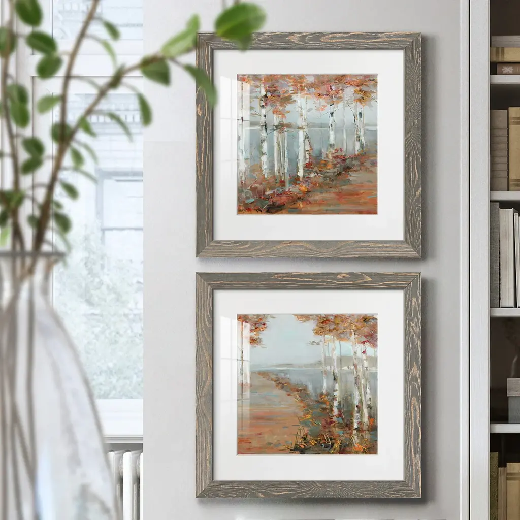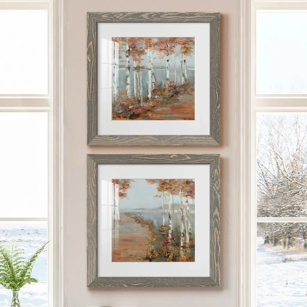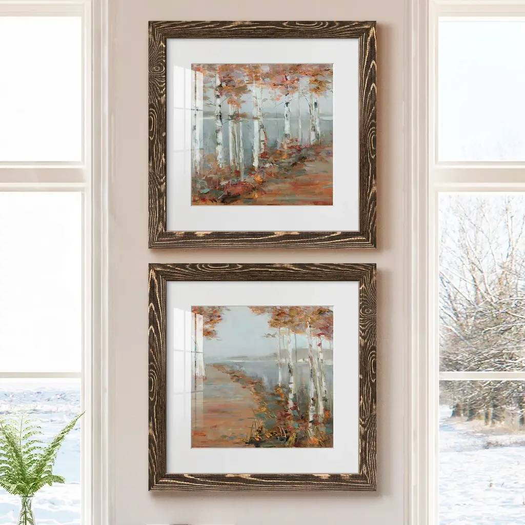 Birch Walk I-Premium Framed Print - Ready to Hang Framed in distressed wood and available in an array of sizes and colors Each piece is joined and assembled by hand and comes ready to hang 2 INCH BEVELED MATTE BOARD PLEXIGLASS COVERING READY TO HANG MADE IN THE USA SOLID WOOD FRAME MADE IN USA FADE RESISTANT GICLEE PRINTING on Canvas or Paper