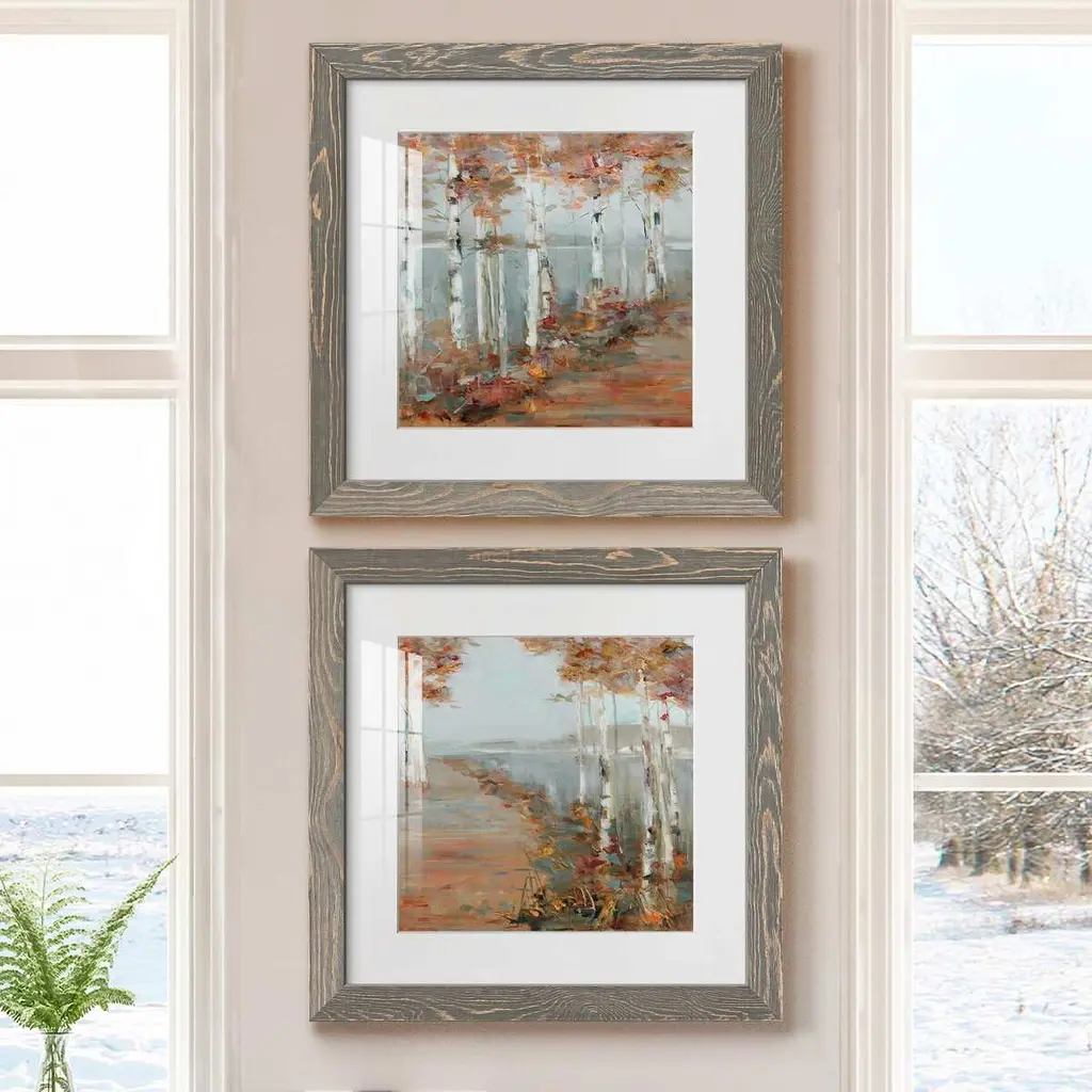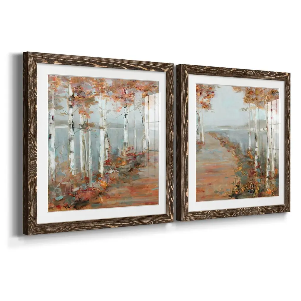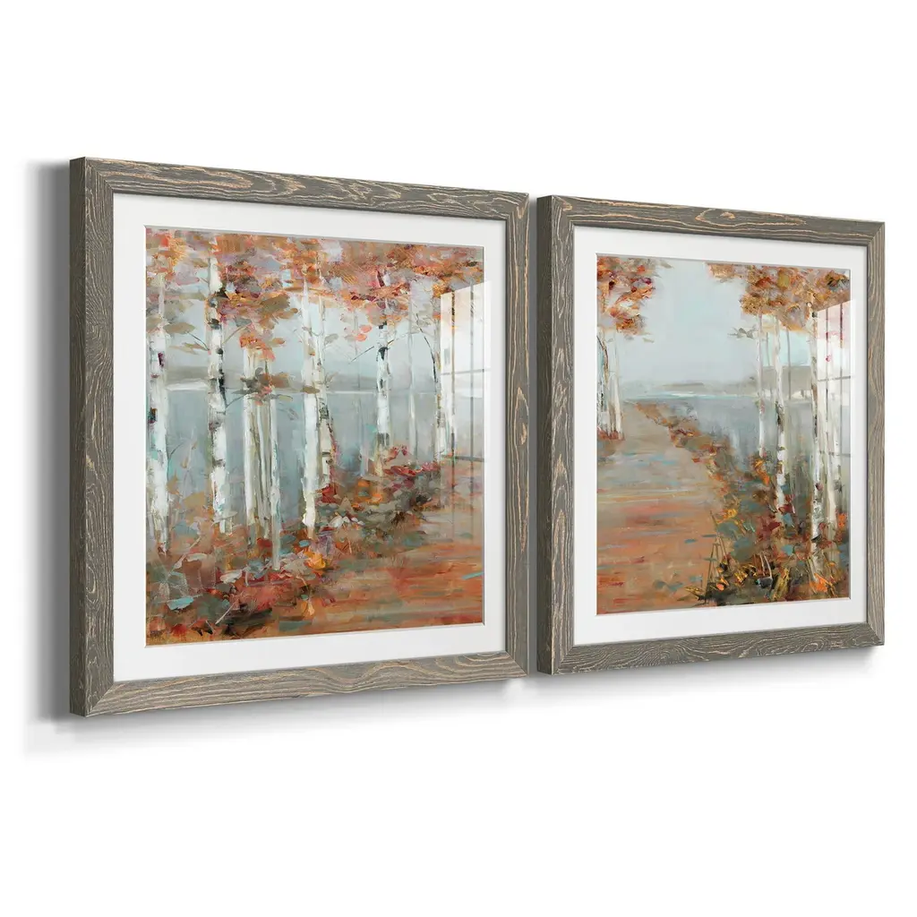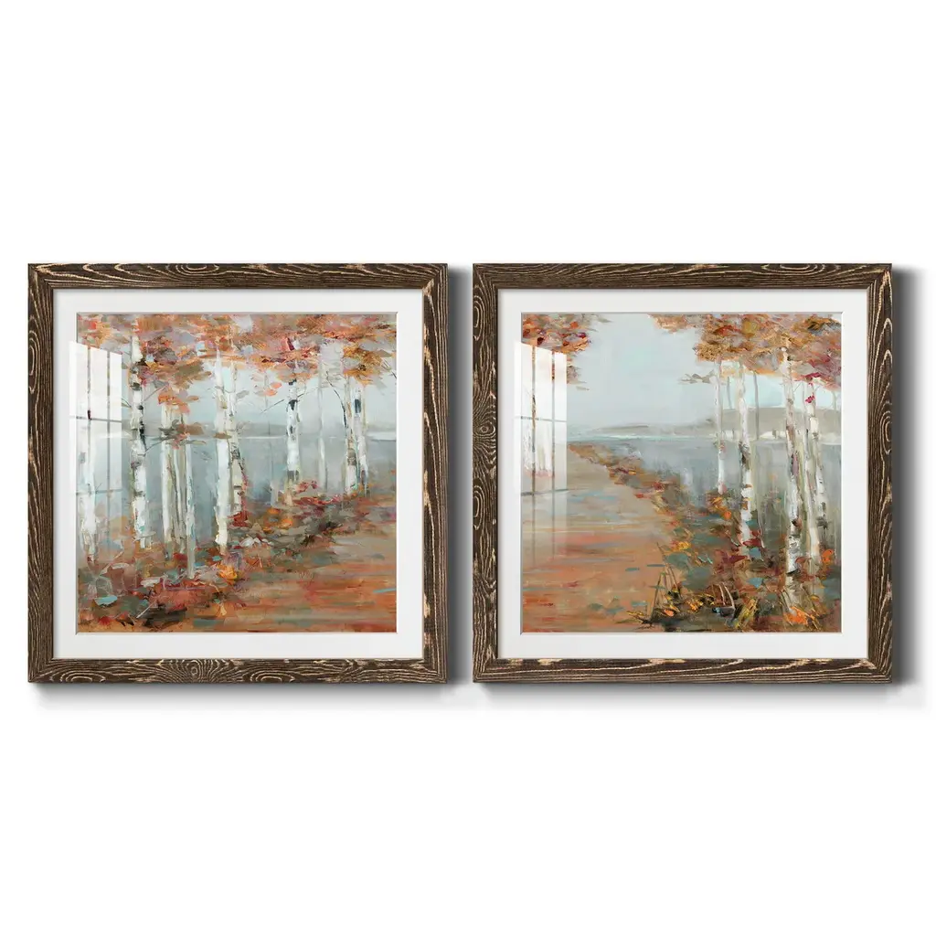 Birch Walk I-Premium Framed Print - Ready to Hang Framed in distressed wood and available in an array of sizes and colors Each piece is joined and assembled by hand and comes ready to hang 2 INCH BEVELED MATTE BOARD PLEXIGLASS COVERING READY TO HANG MADE IN THE USA SOLID WOOD FRAME MADE IN USA FADE RESISTANT GICLEE PRINTING on Canvas or Paper