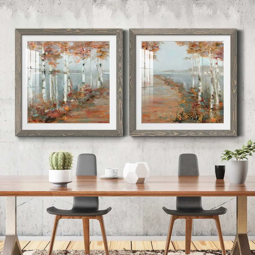 Birch Walk I-Premium Framed Print - Ready to Hang Framed in distressed wood and available in an array of sizes and colors Each piece is joined and assembled by hand and comes ready to hang 2 INCH BEVELED MATTE BOARD PLEXIGLASS COVERING READY TO HANG MADE IN THE USA SOLID WOOD FRAME MADE IN USA FADE RESISTANT GICLEE PRINTING on Canvas or Paper