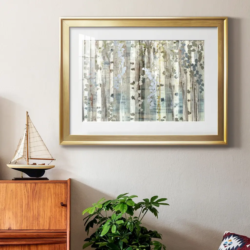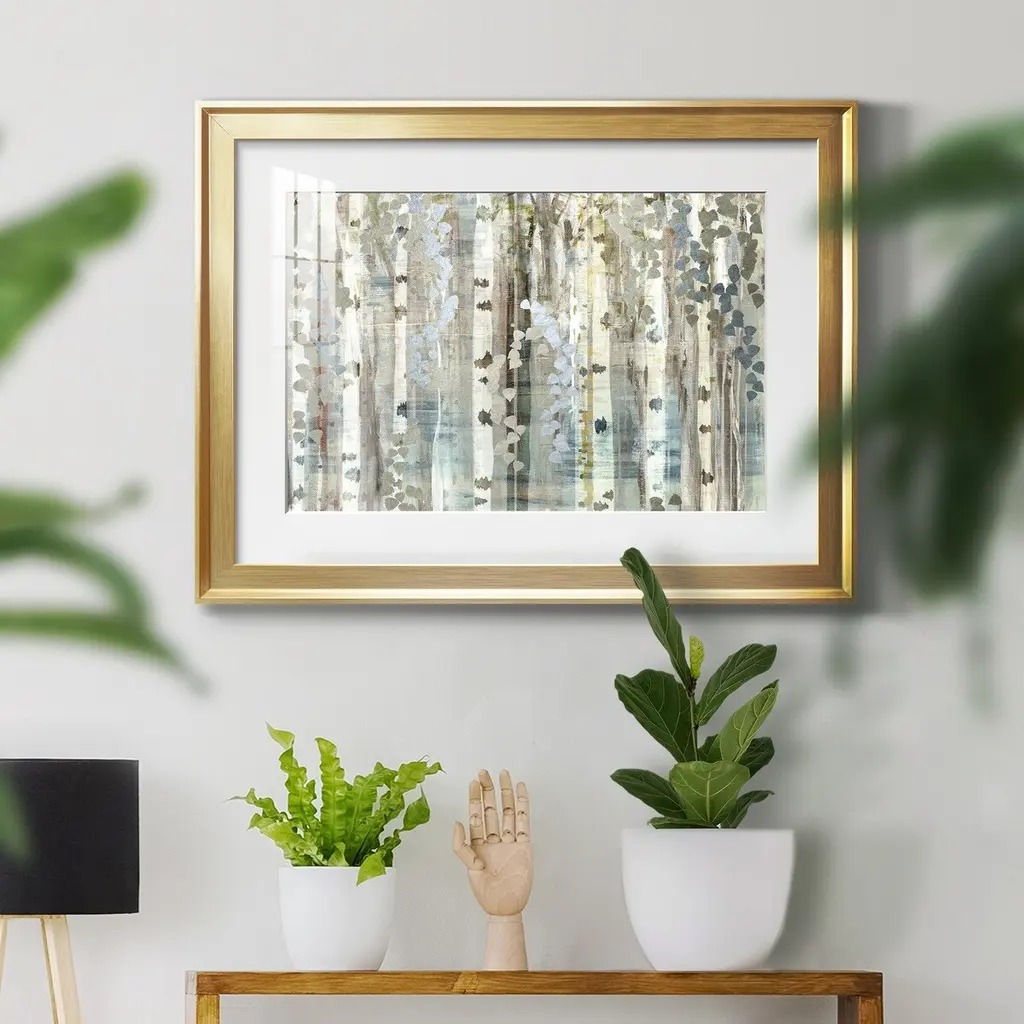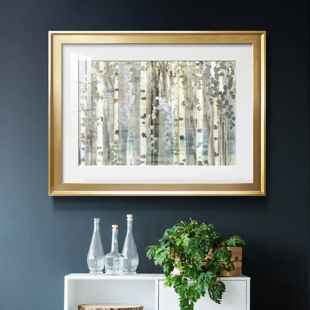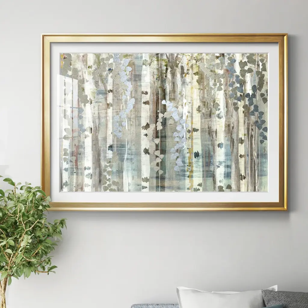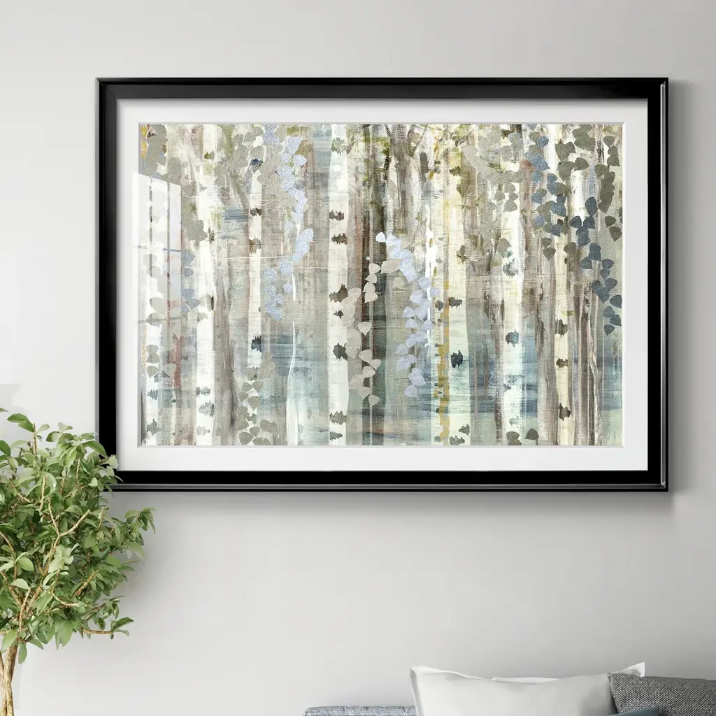 Birch Wood Meadow Premium Framed Print - Ready to Hang A Premium Framed Print created to last. Framed in distressed wood and available in an array of sizes and colors Featuring a beveled a solid wood stretcher bar, each piece comes ready to hand 4 SIZES AVAILABLE 30.5''X42.5'' - Overall Size 26.5'X36.5'' - Overall Size 22''x30'' - Overall Size 18''x24'' - Overall Size Each piece is made to order. Each piece comes with hanging hardware. Made in the USA Ready to Hang Giclee Paper Print Acrylic Glass Beveled Matt Board