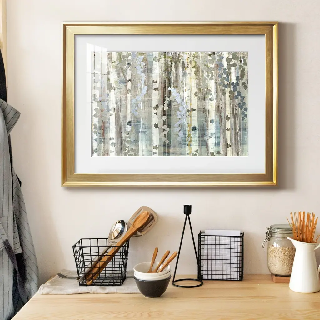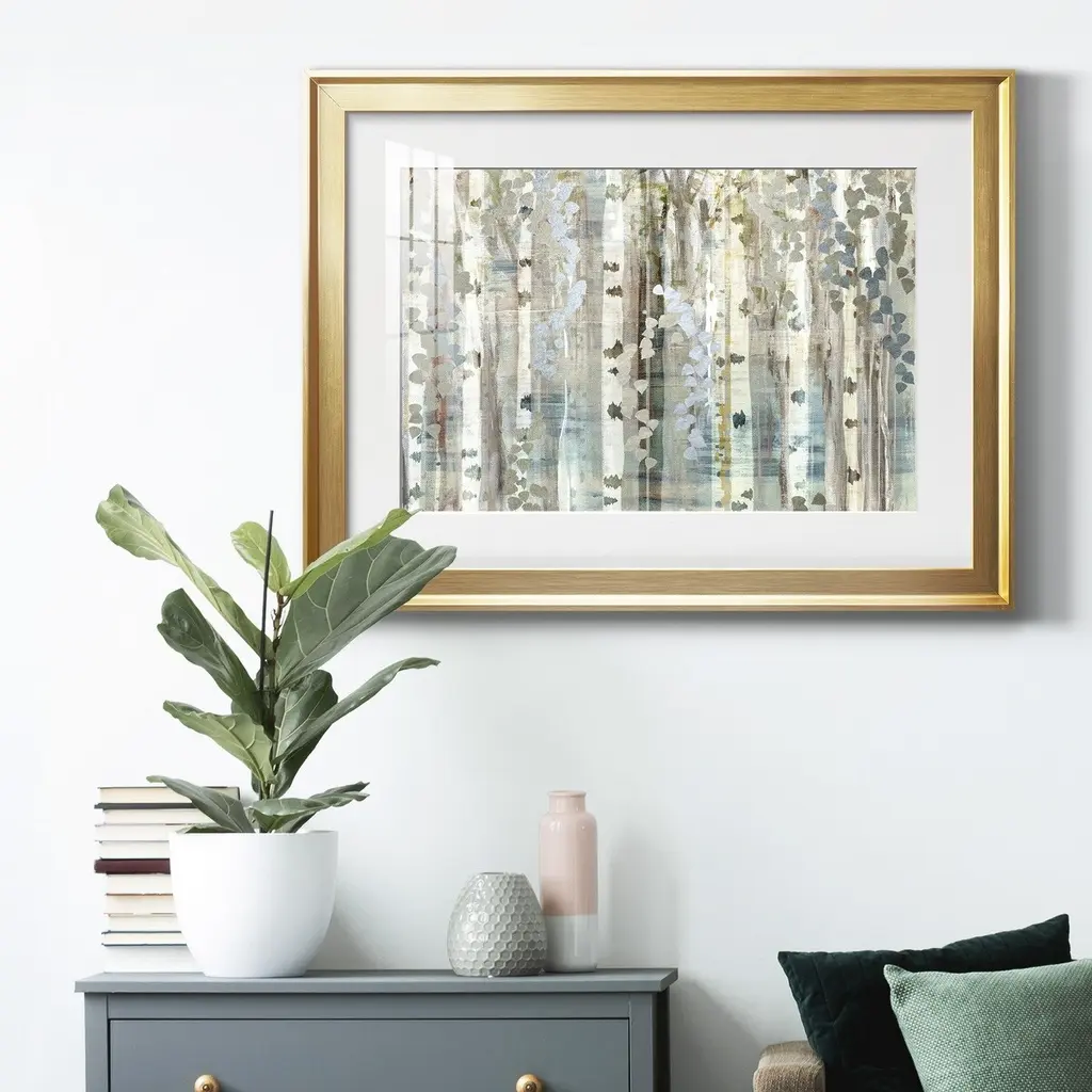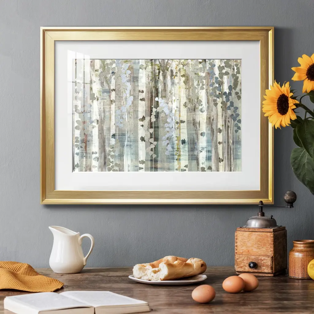 Birch Wood Meadow Premium Framed Print - Ready to Hang A Premium Framed Print created to last. Framed in distressed wood and available in an array of sizes and colors Featuring a beveled a solid wood stretcher bar, each piece comes ready to hand 4 SIZES AVAILABLE 30.5''X42.5'' - Overall Size 26.5'X36.5'' - Overall Size 22''x30'' - Overall Size 18''x24'' - Overall Size Each piece is made to order. Each piece comes with hanging hardware. Made in the USA Ready to Hang Giclee Paper Print Acrylic Glass Beveled Matt Board