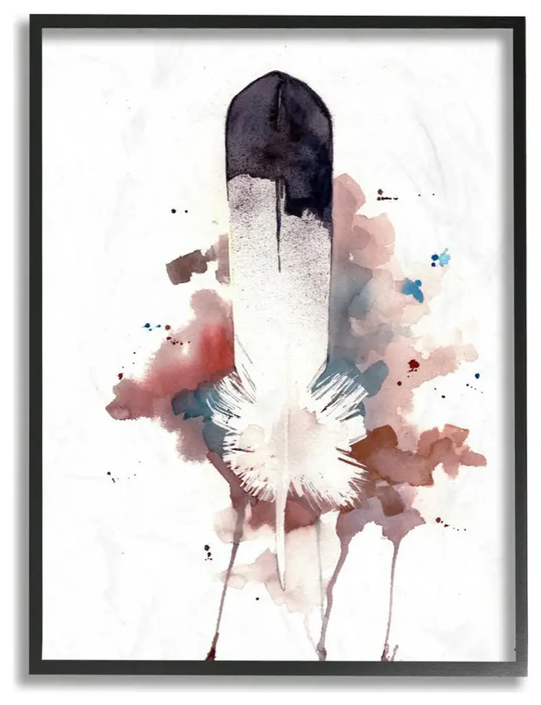 Bird Feathers Abstract Watercolor Painting, 16"x20"