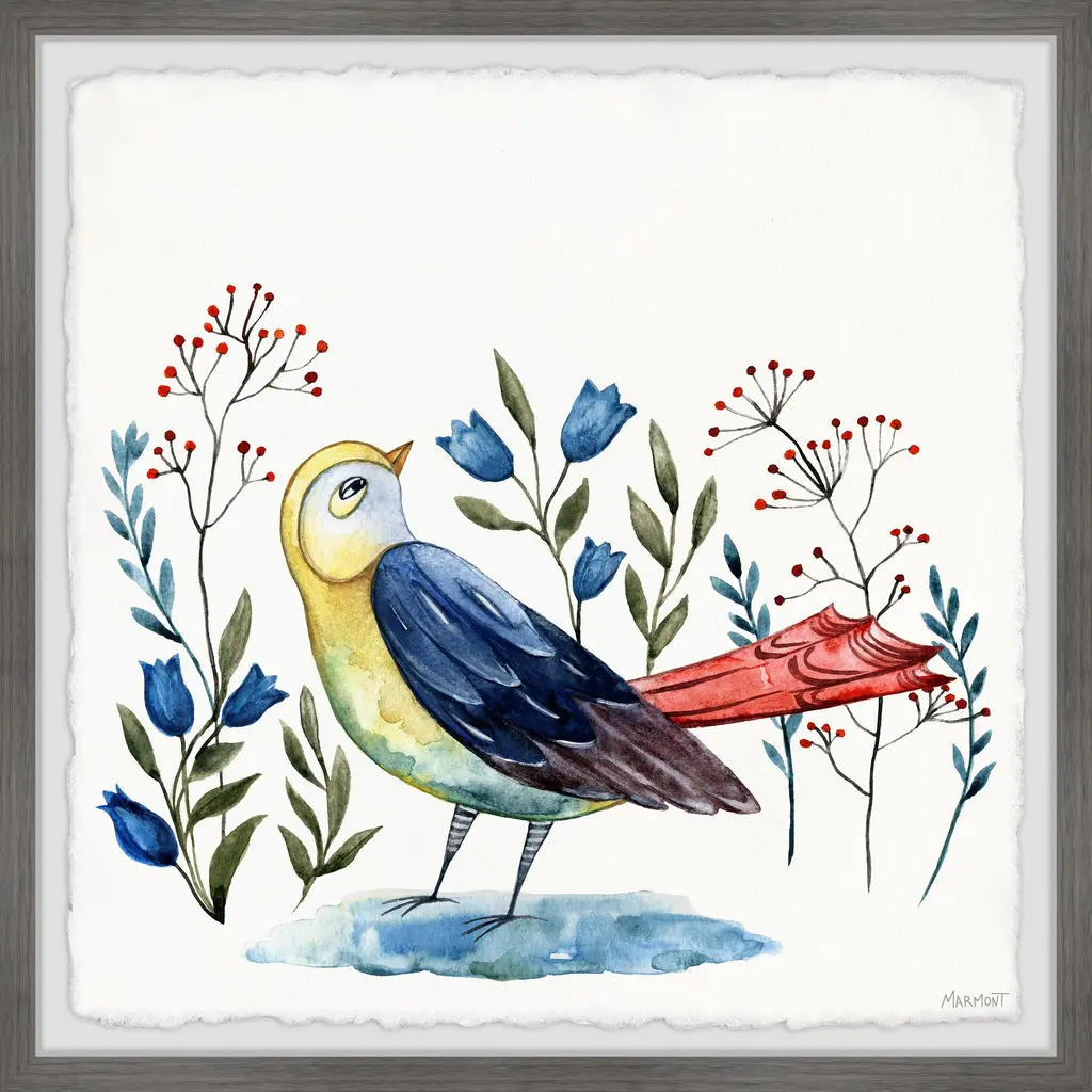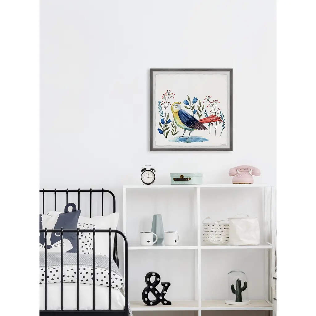 Perfect for porches and living spaces, this watercolor painting print features a colorful bird surrounded by floral patterns. Proudly printed in the USA, this piece is printed on high quality archive paper and professionally hand-framed. With wall-mounting hooks included, this artful accent is ready to hang up as soon as it reaches your front door. • Top quality Giclée print on high resolution Archive Paper • Hand cut deckled edges • High quality durable non-warping frame • Finished under shatter resistant plexiglass • Arrives ready to hang • Includes a certificate of authenticity • Printed in the USA