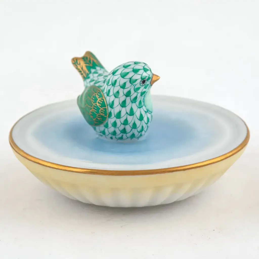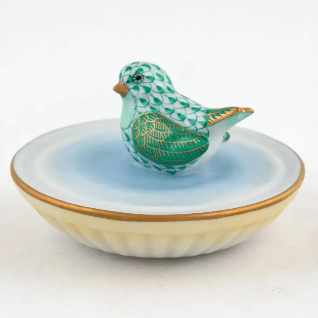 Bird In Bird Bath Green 1.75in H X 3.25in D