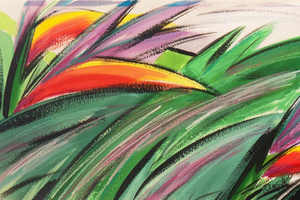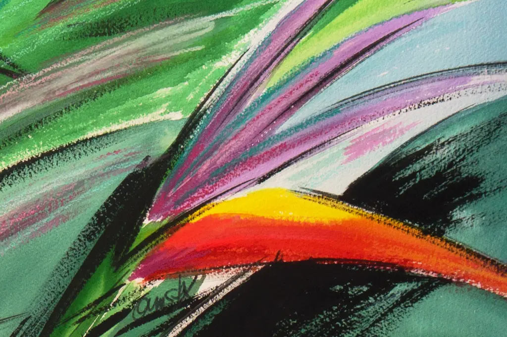 Signed lower right, 'Ormsby' for Anne Ormsby (American, 20th century) and painted circa 1985. This California woman artist has had her work successfully retailed with nation-wide brands including Macy's, Pier One Imports and Target. We are happy to offer an original.
