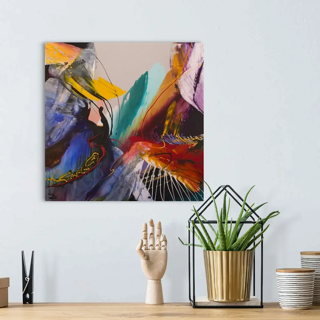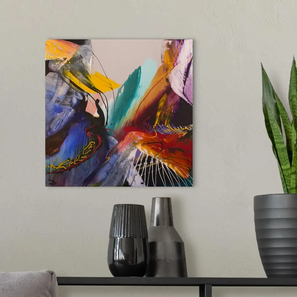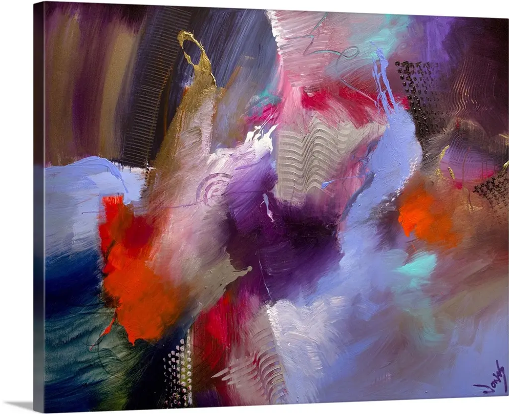 Contemporary abstract painting using wild and vivid colors coming together to create depth.