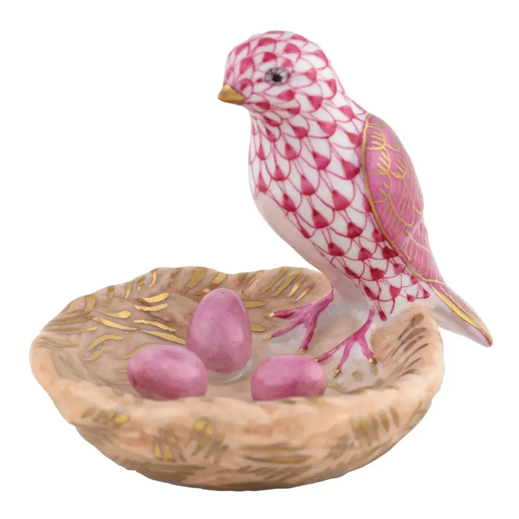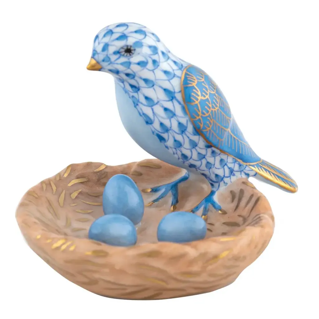 Endearing animals meek and bold, large and small, demure and majestic eagerly await the chance to melt your heart and warm your home. Each is brought to life by the skilled hands of artisans crafting and painting these charming porcelain creatures. The famous fishnet decor adorning many of the animals took form in 1858 when a Herend painter became inspired by a fishscale design he saw on a Chinese porcelain plate and painted a similar pattern onto a rooster figurine to imitate feathers. The rest is history, with the fishnet design now a Herend signature prized worldwide. Now the biggest porcelain manufactory in Europe, Herend was founded in 1826 to produce earthenware in the small Hungarian village for which it was named. At the time, Hungary was flooded with low-cost pottery, but in 1839, Mor Fischer became the Manufactory’s new owner and he decided to focus on producing dinnerware replacement pieces for Europe’s royal families to complement their valuable porcelain patterns from Germany and the Far East. As his client base grew, Fischer commissioned his artists to begin designing dinnerware patterns of their own. Queen Victoria’s 1851 purchase of a large set for Windsor Castle was a milestone, setting the stage for aristocrats throughout Europe to clamor for Herend in their estates. In the 1850s, Herend added meticulously-crafted figurines to its creations. Herend’s trademark fishnet pattern, which is widely recognized and prized as Herend’s signature design, started in 1858 when an artist who was intrigued with a Chinese plate’s fish scale design painted it onto a rooster figurine to imitate feathers.