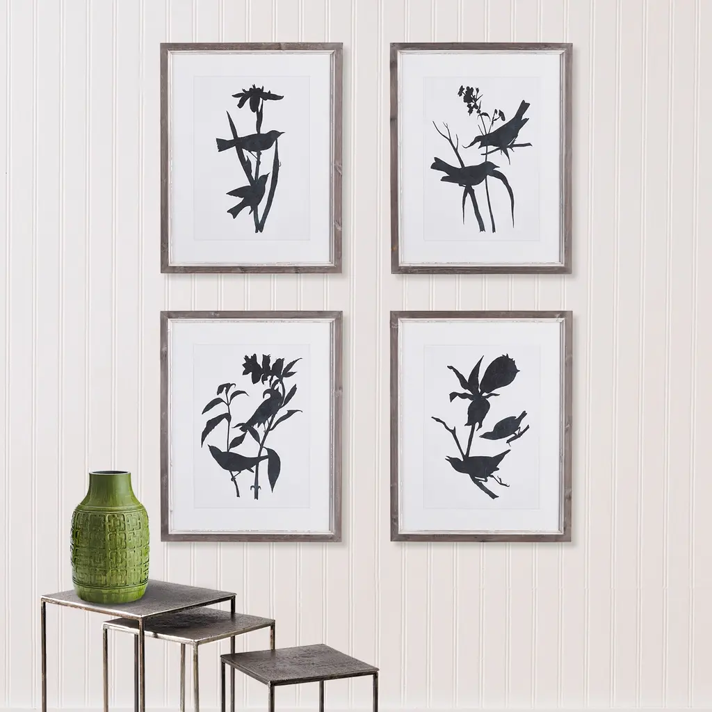 Bird Silhouette Prints, Set Of 4 - 21 X 28 - Natural
