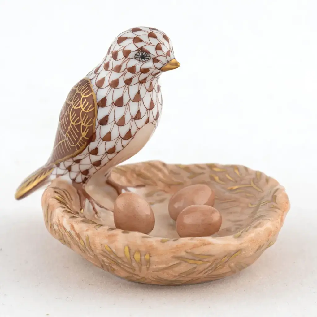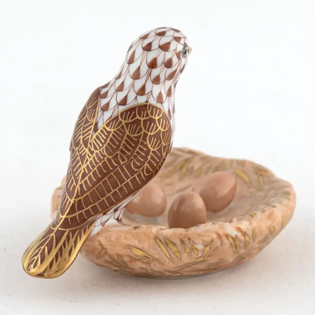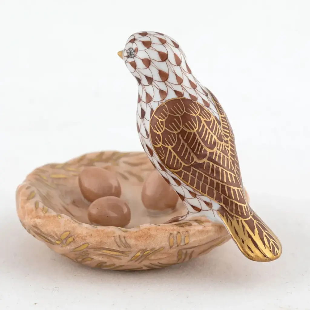 Endearing animals meek and bold, large and small, demure and majestic eagerly await the chance to melt your heart and warm your home. Each is brought to life by the skilled hands of artisans crafting and painting these charming porcelain creatures. The famous fishnet decor adorning many of the animals took form in 1858 when a Herend painter became inspired by a fishscale design he saw on a Chinese porcelain plate and painted a similar pattern onto a rooster figurine to imitate feathers. The rest is history, with the fishnet design now a Herend signature prized worldwide. Now the biggest porcelain manufactory in Europe, Herend was founded in 1826 to produce earthenware in the small Hungarian village for which it was named. At the time, Hungary was flooded with low-cost pottery, but in 1839, Mor Fischer became the Manufactory’s new owner and he decided to focus on producing dinnerware replacement pieces for Europe’s royal families to complement their valuable porcelain patterns from Germany and the Far East. As his client base grew, Fischer commissioned his artists to begin designing dinnerware patterns of their own. Queen Victoria’s 1851 purchase of a large set for Windsor Castle was a milestone, setting the stage for aristocrats throughout Europe to clamor for Herend in their estates. In the 1850s, Herend added meticulously-crafted figurines to its creations. Herend’s trademark fishnet pattern, which is widely recognized and prized as Herend’s signature design, started in 1858 when an artist who was intrigued with a Chinese plate’s fish scale design painted it onto a rooster figurine to imitate feathers.