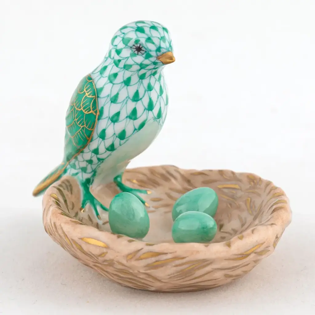 Bird With Nest Green 2.75 In L X 2.25 In W X 2 In H