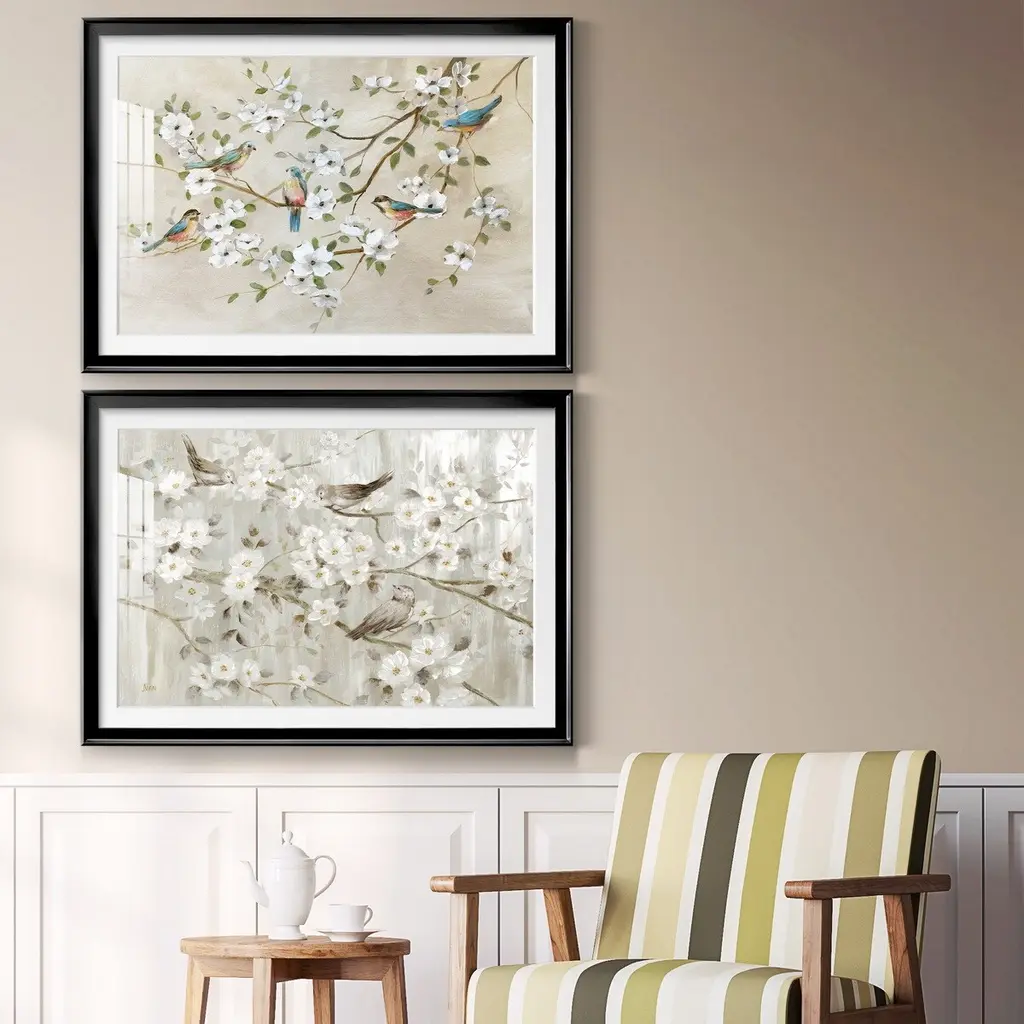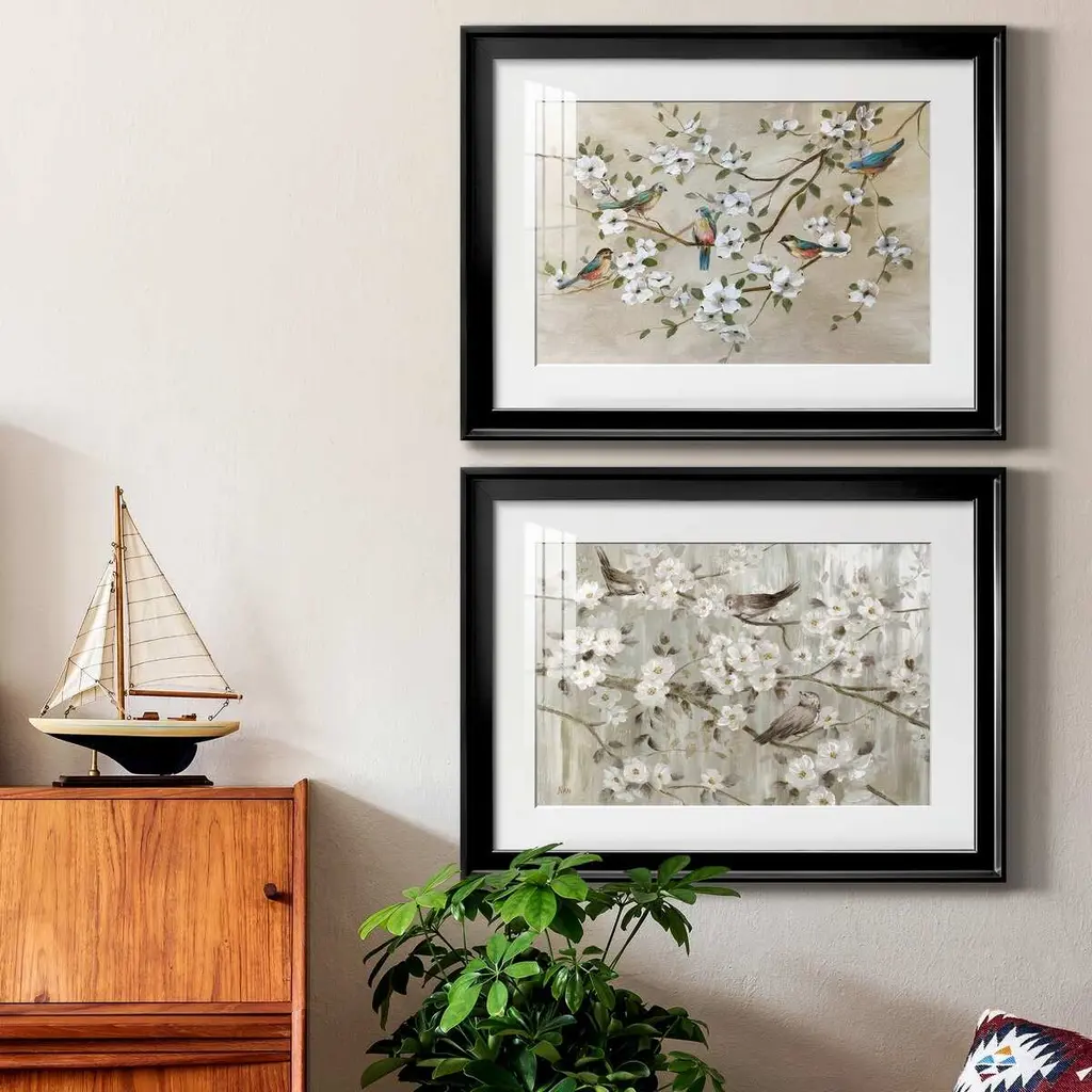 Birds of a Feather Premium Framed Print - Ready to Hang A Premium Framed Print created to last. Framed in distressed wood and available in an array of sizes and colors Featuring a beveled a solid wood stretcher bar, each piece comes ready to hand 4 SIZES AVAILABLE 30.5''X42.5'' - Overall Size 26.5'X36.5'' - Overall Size 22''x30'' - Overall Size 18''x24'' - Overall Size Each piece is made to order. Each piece comes with hanging hardware. Made in the USA Ready to Hang Giclee Paper Print Acrylic Glass Beveled Matt Board