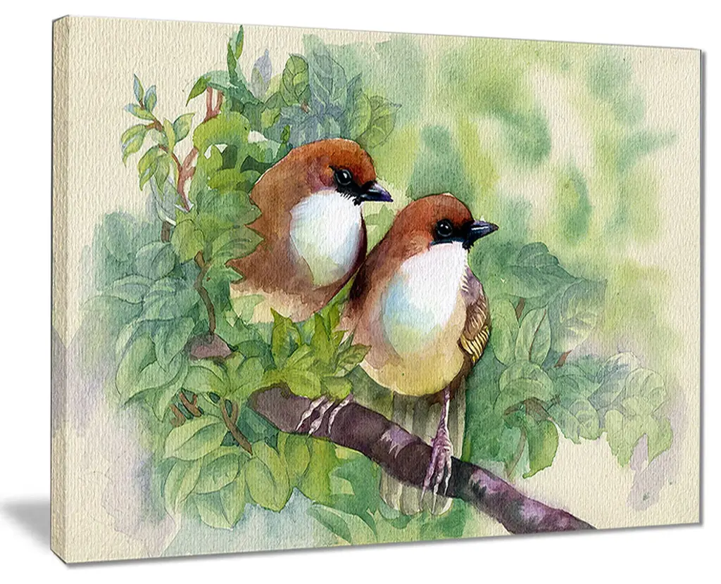 The Birds of Spring canvas art print is sure to make an impression on anyone who sees it. This artwork is gallery wrapped around a 1-inch solid wood frame and arrives carefully packaged and entirely ready to hang on the wall. Design Art only uses the highest resolution and pigments to ensure a crisp colorful print that is never faded or pixelated. This artwork is sure to be a conversation starter in any home or office.