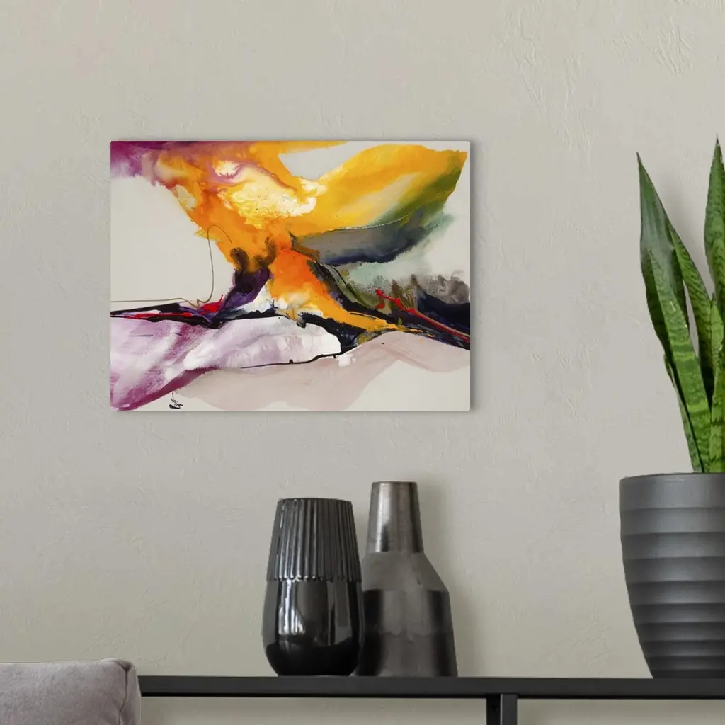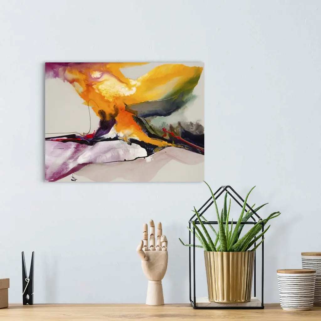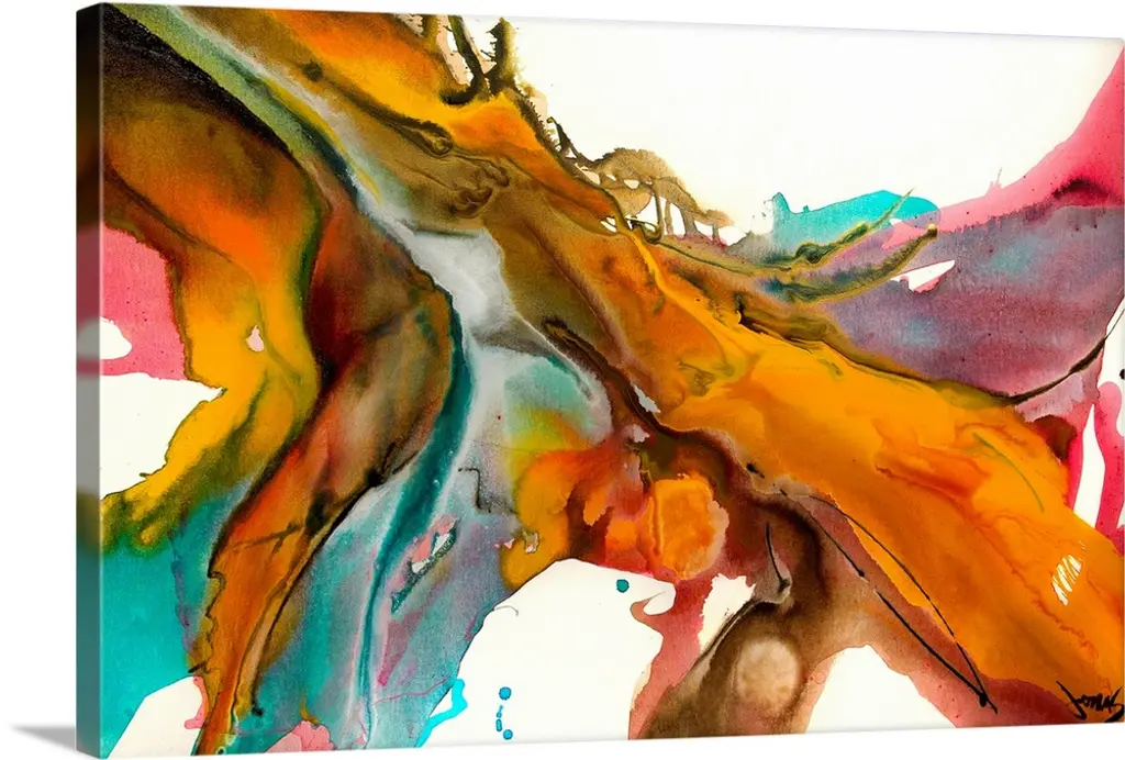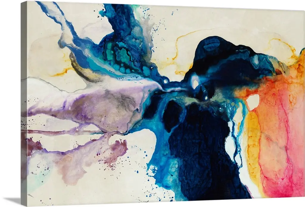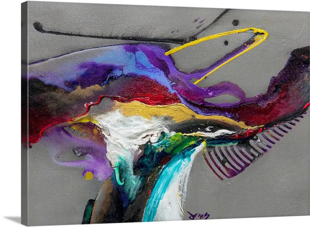 Contemporary abstract painting using wild and vivid colors to create movement and depth.