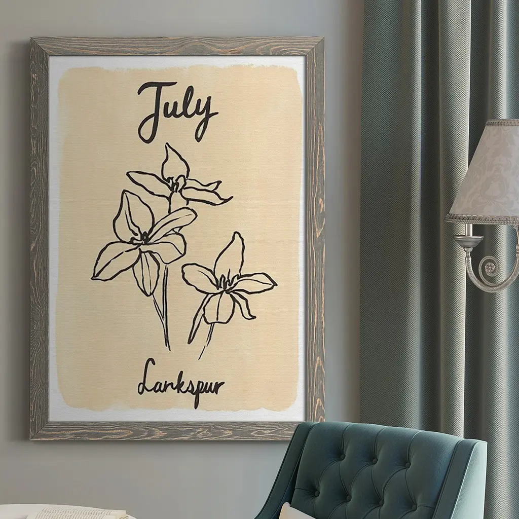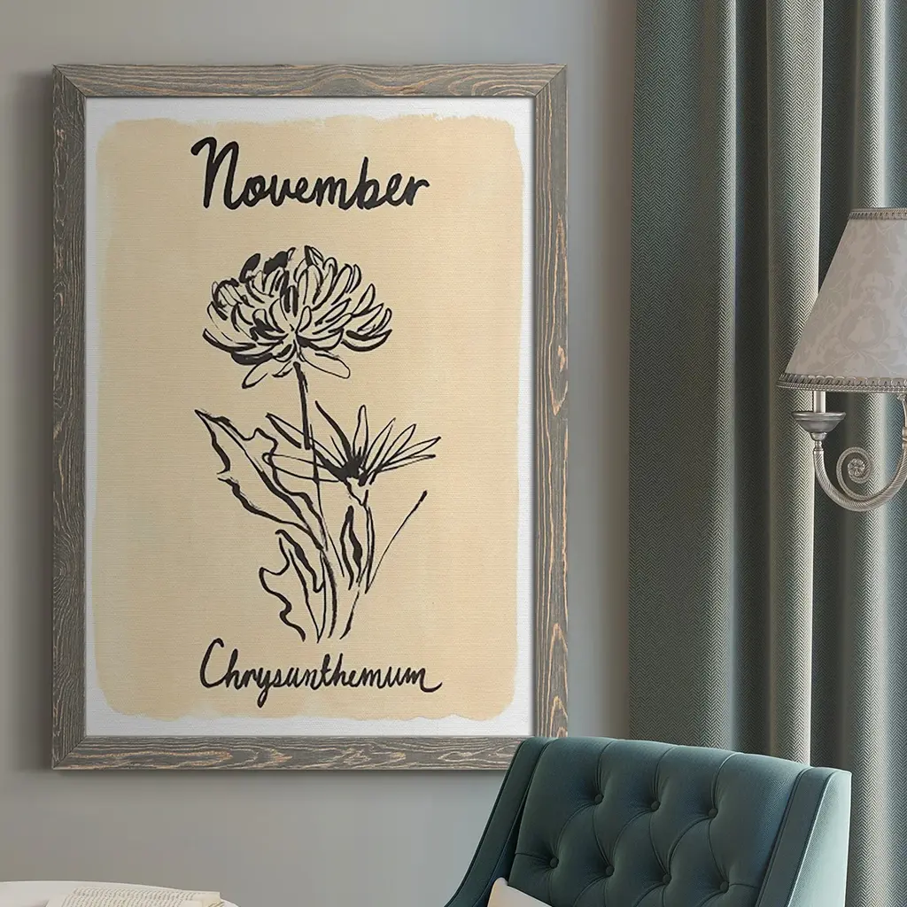 Birth Month IV Premium Framed Print - Ready to Hang A Premium Framed Print created to last. Framed in distressed wood and available in an array of sizes and colors Featuring a beveled a solid wood stretcher bar, each piece comes ready to hand 4 SIZES AVAILABLE 30.5''X42.5'' - Overall Size 26.5'X36.5'' - Overall Size 22.5''x30.5'' - Overall Size 18.5''x24.5'' - Overall Size Each piece is made to order. Each piece comes with hanging hardware. Made in the USA Ready to Hang