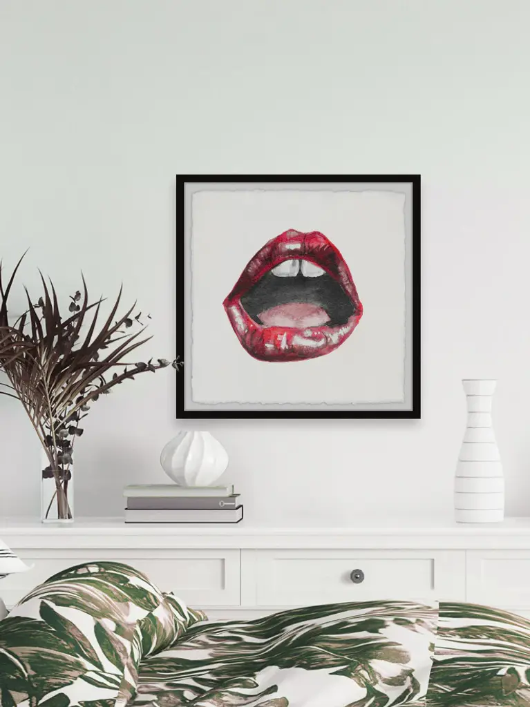 This watercolor painting print invites classic pop art into your space, featuring glamorous red lips that pop against a white background. Proudly printed in the USA, this piece is printed on high quality archive paper and professionally hand-framed. With wall-mounting hooks included, this artful accent is ready to hang up as soon as it reaches your front door.- Top quality Giclee print on high resolution Archive Paper- Hand cut deckled edges- High quality durable non-warping frame- Finished under shatter resistant plexiglass- Arrives ready to hang- Includes a certificate of authenticity- Printed in the USA