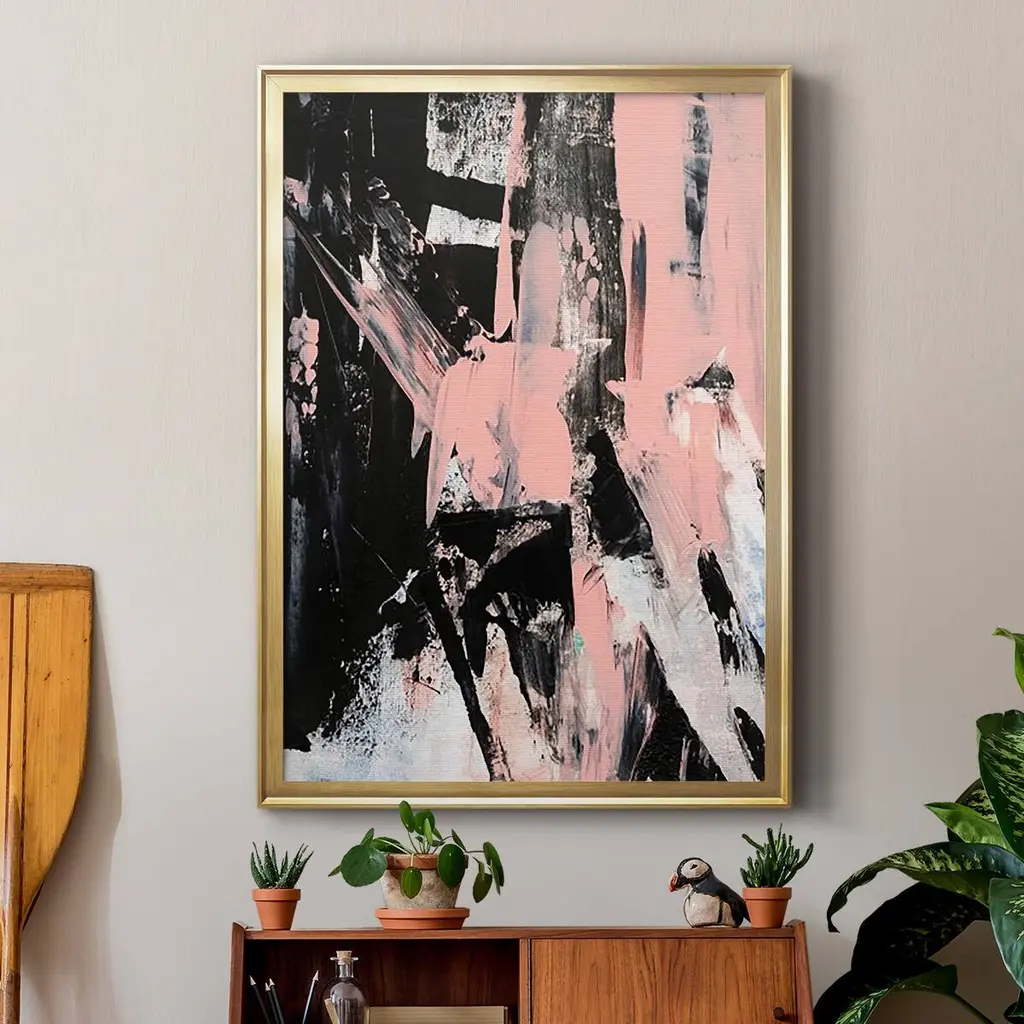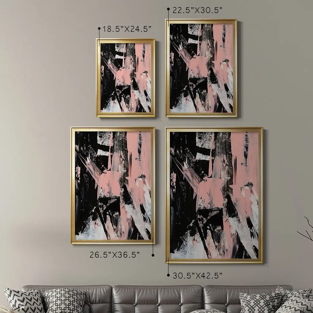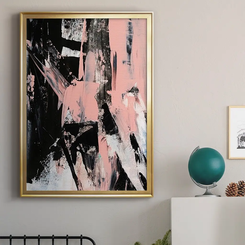Black & Blush II Premium Framed Print - Ready to Hang A Premium Framed Print created to last. Framed in distressed wood and available in an array of sizes and colors Featuring a beveled a solid wood stretcher bar, each piece comes ready to hand 4 SIZES AVAILABLE 30.5''X42.5'' - Overall Size 26.5'X36.5'' - Overall Size 22.5''x30.5'' - Overall Size 18.5''x24.5'' - Overall Size Each piece is made to order. Each piece comes with hanging hardware. Made in the USA Ready to Hang