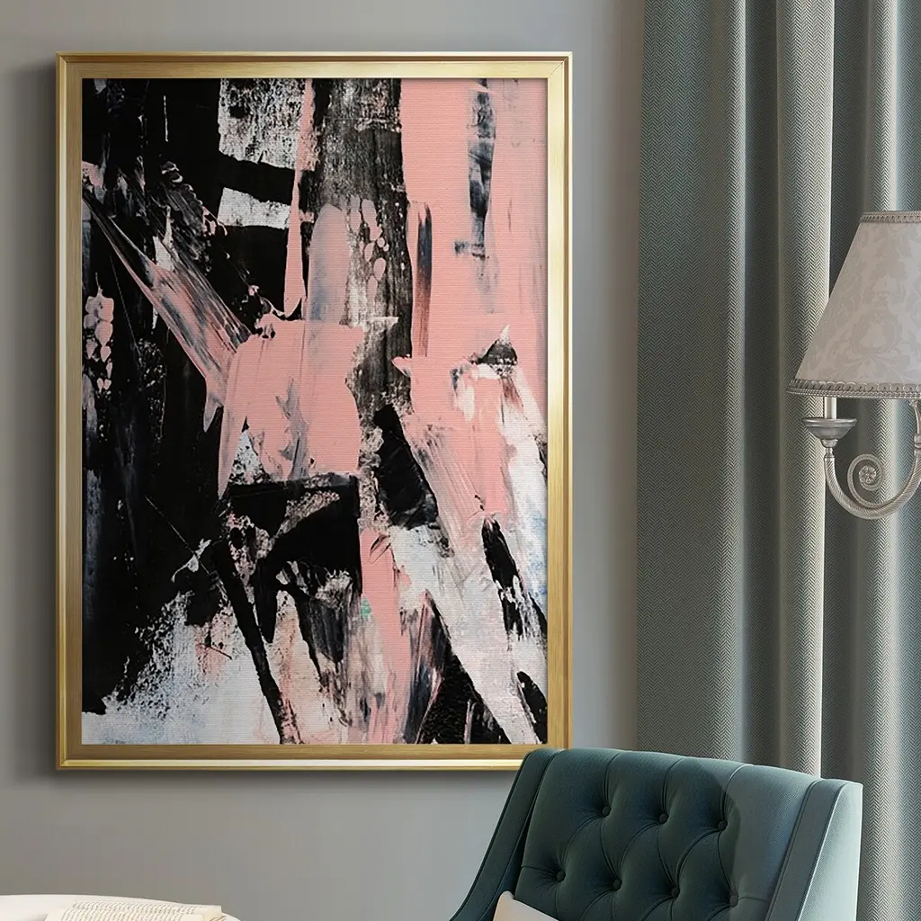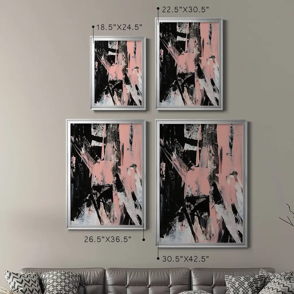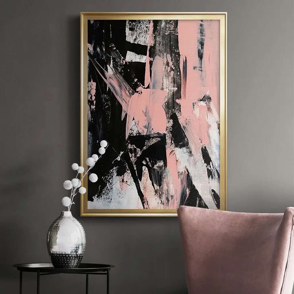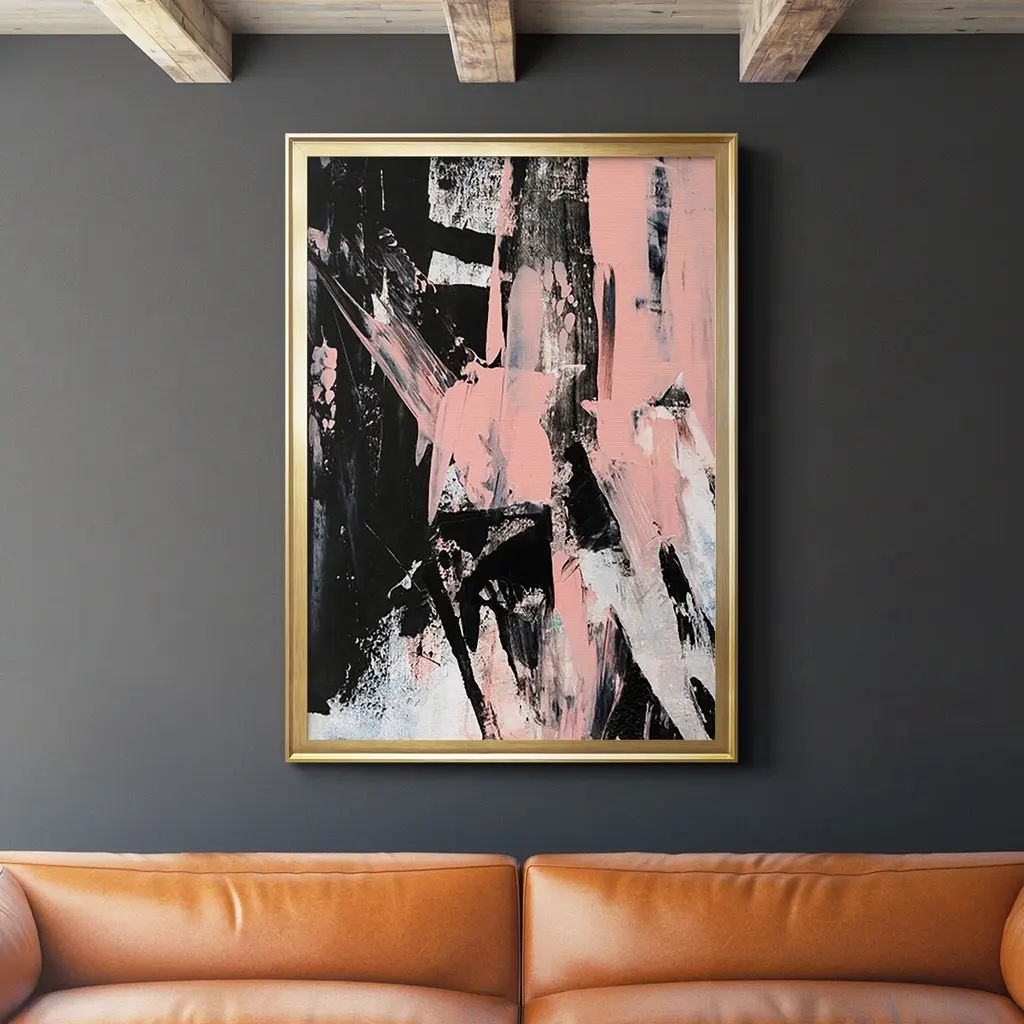 Black & Blush II Premium Framed Print - Ready to Hang A Premium Framed Print created to last. Framed in distressed wood and available in an array of sizes and colors Featuring a beveled a solid wood stretcher bar, each piece comes ready to hand 4 SIZES AVAILABLE 30.5''X42.5'' - Overall Size 26.5'X36.5'' - Overall Size 22.5''x30.5'' - Overall Size 18.5''x24.5'' - Overall Size Each piece is made to order. Each piece comes with hanging hardware. Made in the USA Ready to Hang