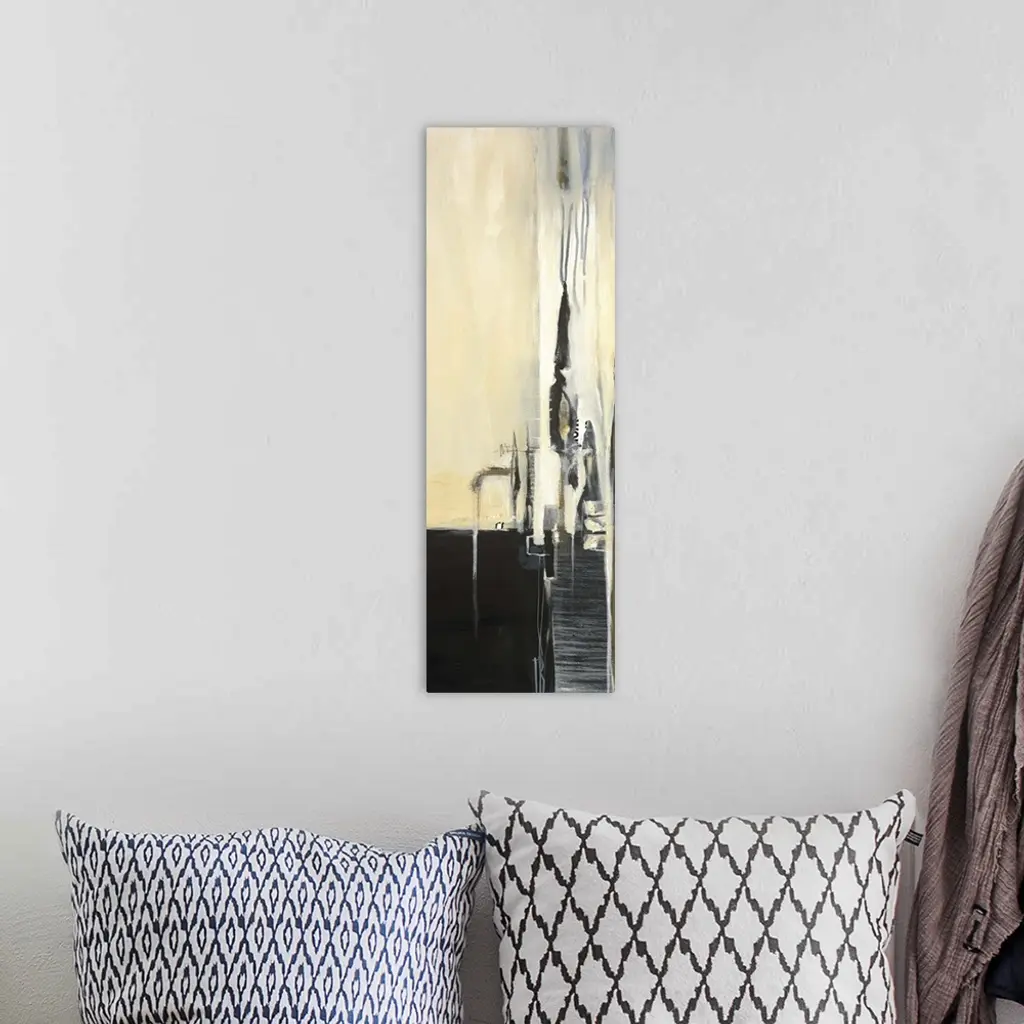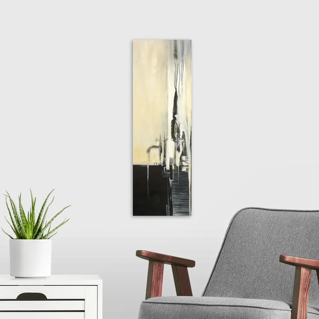 Contemporary abstract painting using light weathered rustic tones.
