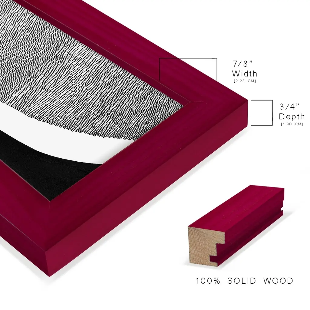 Black & White Abstract I -EZ SWITCH Framed Print w/glass-Cherry Red A delightful, framed print. Featuring a solid wood frame with real wood glass. This premium print is giclee quality. In addition, every frame features a removable back and table top stand. This allows you to change your art in the future or to just stand the art on a table for a new look. We are sure you'll enjoy our new series of EZ SWITCH Framed Art. Solid Wood Frame Real Glass Removable / Replaceable Art Built in Tabletop Stand Sizes range from 4x6 up to 12x15 - buy just one or pair them up as sets as you see fit.