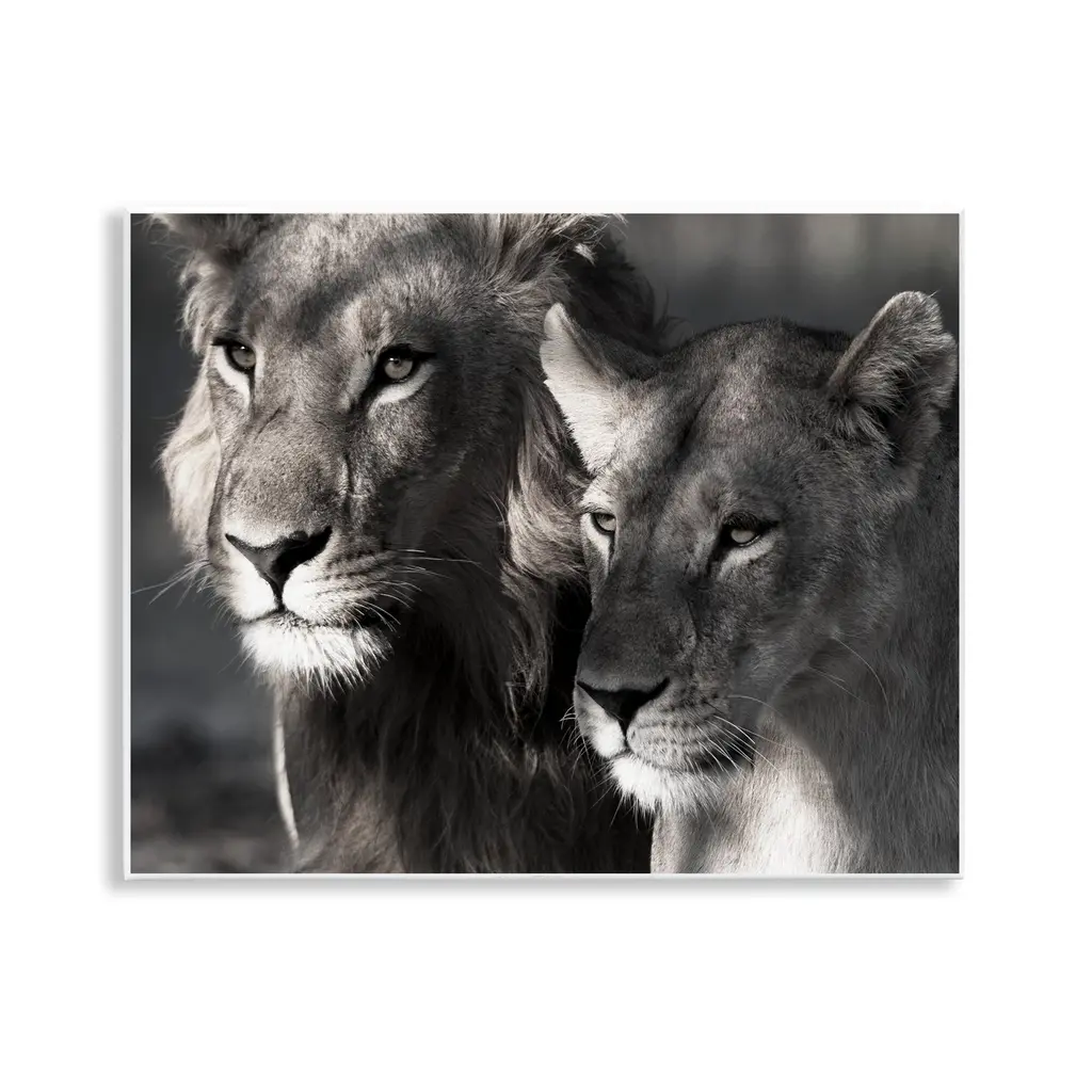 In this black and white artwork by Andrew Martin, a Lion gazes intensely out from the canvas upon the viewer almost as if they were its prey. The high contrast, highly detailed, and close-up profile allow you to see this majestic animal in a new focus. This is a limited edition piece by artist Gaby, part of our curated collection with Cobra Art.