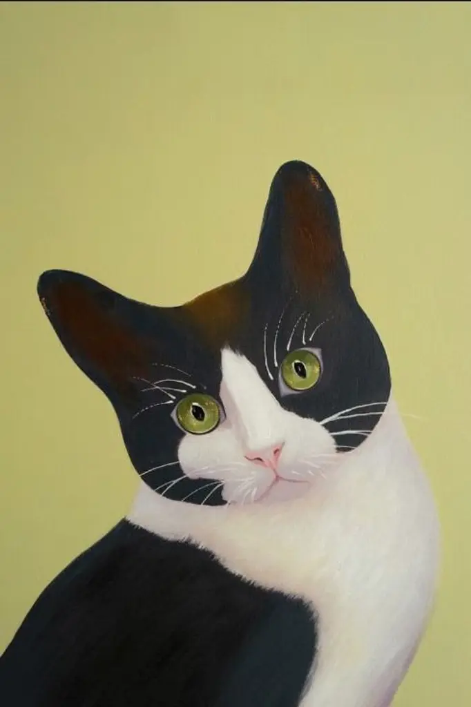 Black and White Cat Framed Wall Art on Canvas. For an unusual piece that's a great conversation starter, try this painting of a black and white cat on a green background. It provides a pop of color and contrast to both neutral and colorful backgrounds. Display this kitty among your family portraits for a laugh, in the kids' room for company, or in a separate pet area for furry friends. Plastic frame over stretched canvas. Hardware/hangers are included but not installed on the frame for easy customization. Wipe clean with a lint-free, dry cloth. Matching pieces sold separately. Fully assembled. Manufacturer: Kalalou.