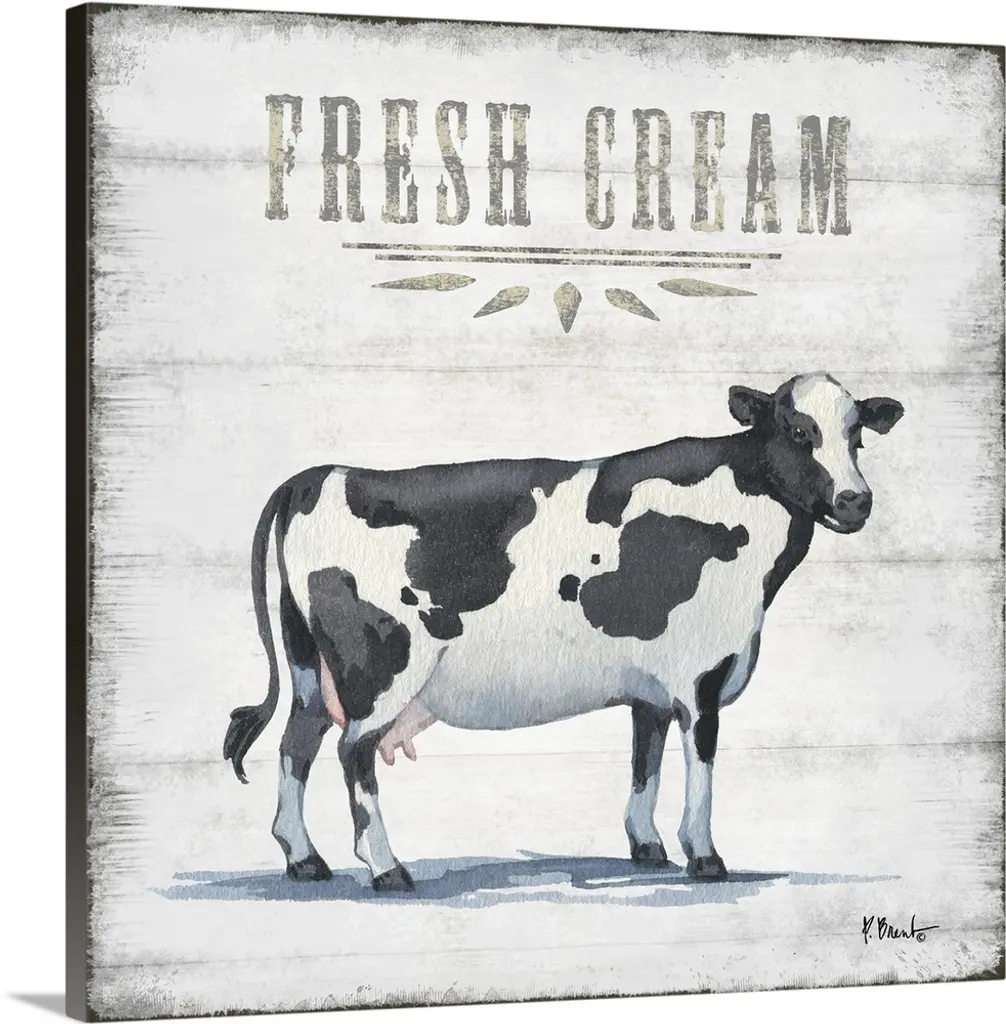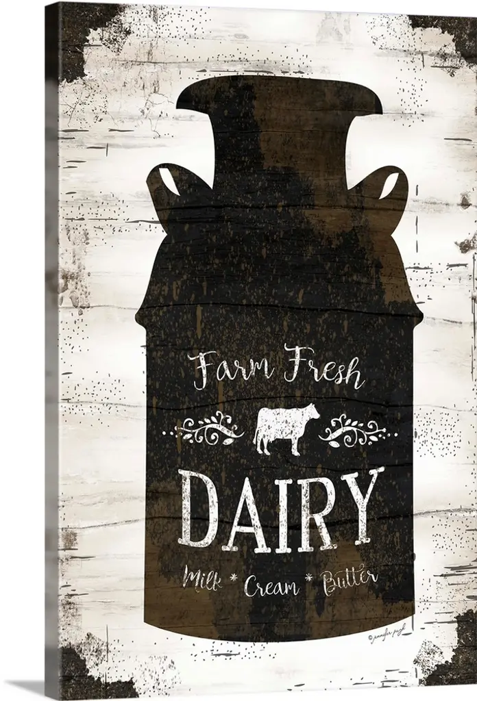 Black & White Farm Fresh Country Milk Cow Xxl Canvas Wall Art, 30"x40"