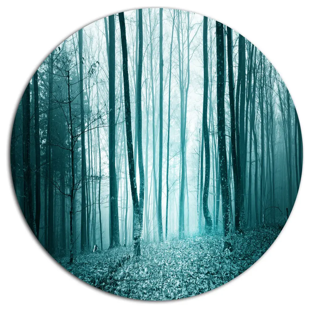 Bring Contemporary Abstraction to your home with this large Circle Metal wall art. This Black and White Foggy Forest Metal Artwork makes it the focal point of any room or office. - White Gloss Coating ensures colors are extra vibrant with light reflection.- Aluminum grade Sheet Metal with 1 inch mounting frame on the back giving the illusion that the artwork is floating on the wall..- Mounting Brackets are included along with instructions.- High Quality Digital images are created directly into a glossy aluminum panel producing a stunning and captivating print into the glossy finish of the metal.- Water, Fire and Scratch resistant HD Aluminum panels.- Looks better than any photo paper and guaranteed to last at least 20 years- Easy to clean with a microfiber cloth. Colors are far superior to regular Canvas Art. - Easy to Hang