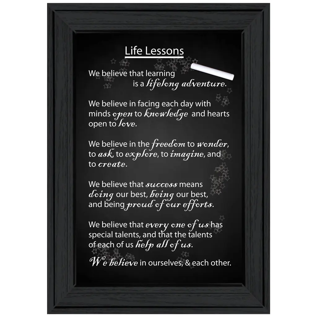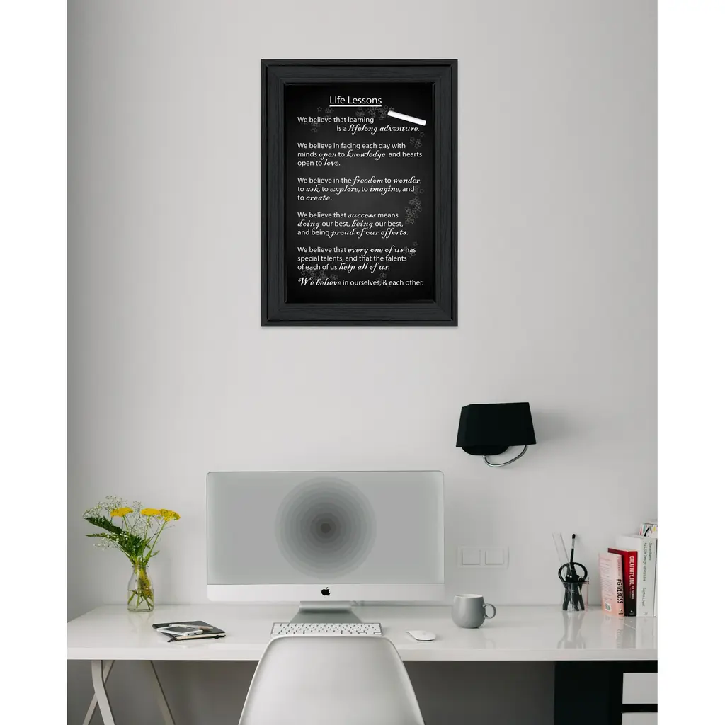 This Black and White Life Lessons black framed print wall art will add a beautiful decorative accent to your decor. This print is a visual artistic expression that allows you to decorate your space in style. Reproduced for you on paper, this hanging decorative accent will be a trendy and fashionable way to dress your walls. Hang on your wall to add some up to date fashion and decoration. Instantly liven up your space with this art that brings color and dimension to your walls. 15" H x 11" W x 1" D