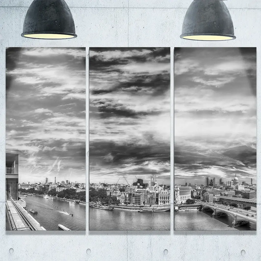 "Black And White Panoramic London" Metal Wall Art, 3 Panels, 36"x28"