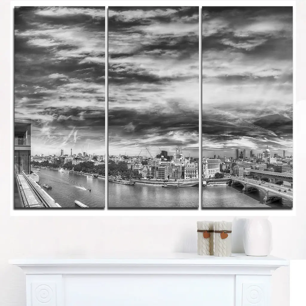 Bring contemporary abstraction to your home with this large 36W x 28H Metal Wall Art. This Black and White Panoramic London Metal Artwork makes it the focal point of any room or office. - White gloss coating ensures colors are extra vibrant with light reflection.- Aluminum grade sheet metal with 1-inch mounting frame on the back giving the illusion that the artwork is floating on the wall.- Mounting brackets are included along with instructions.- High quality digital images are created directly into a glossy aluminum panel producing a stunning and captivating print into the glossy finish of the metal.- Water, fire and scratch resistant HD aluminum panels.- Looks better than any photo paper and guaranteed to last at least 20 years- Easy to clean with a microfiber cloth. Colors are far superior to regular canvas art. - Easy to hang