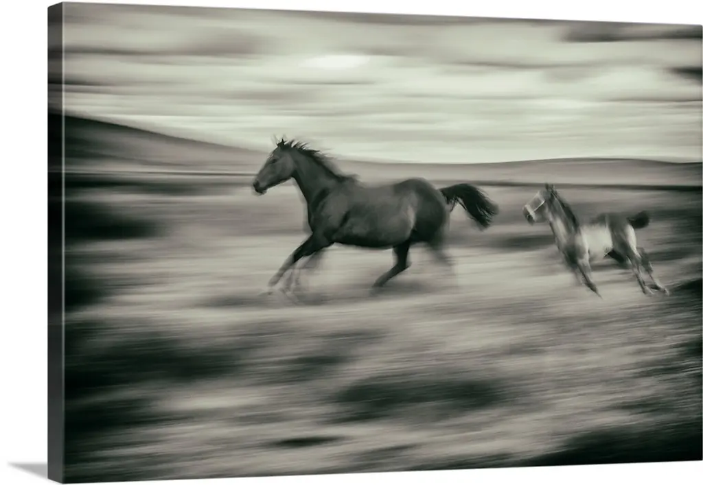 This black and white photographic piece displays the beauty and strength of a pair of wild horses as they gallop through the desert. This artwork has been printed on plexiglass and is a limited-edition piece by artist Gaby, part of our curated collection with our partners Cobra Art.