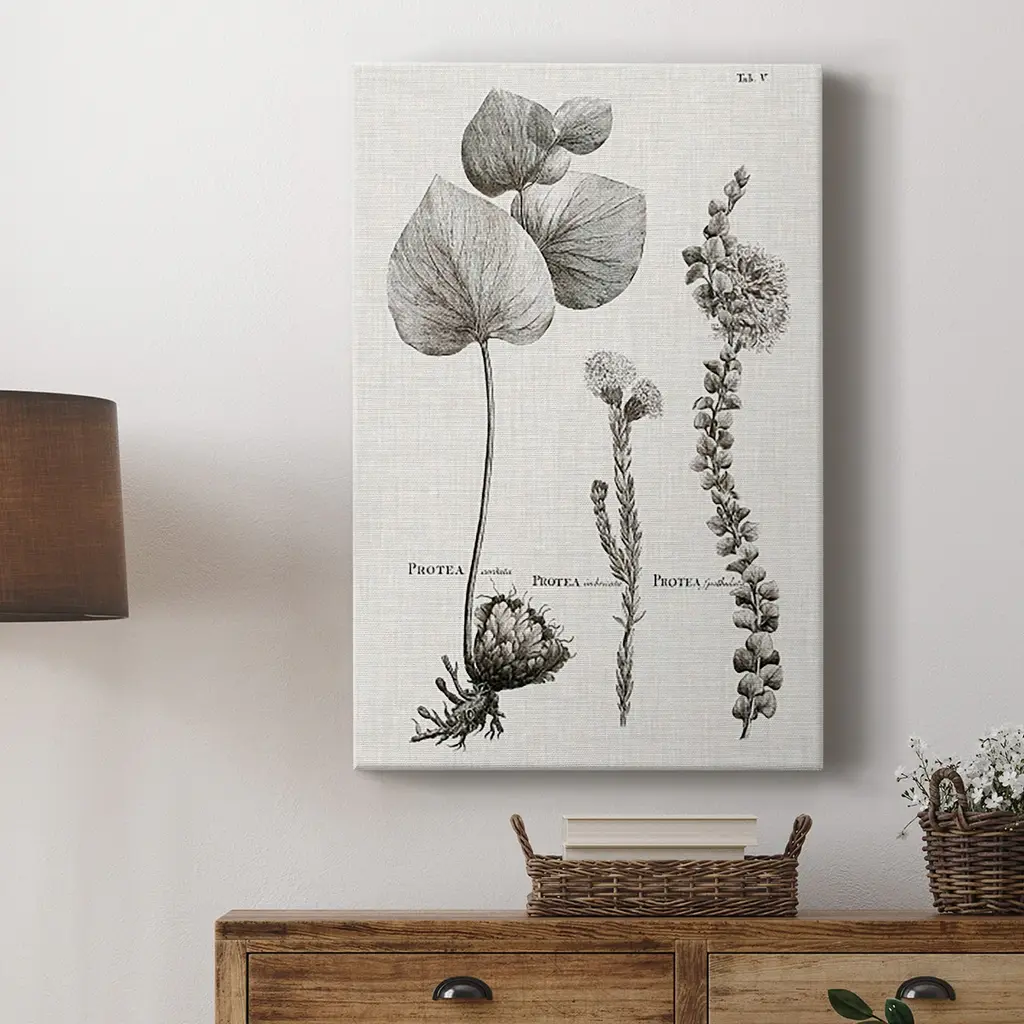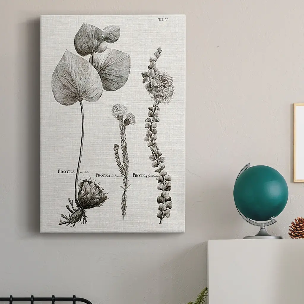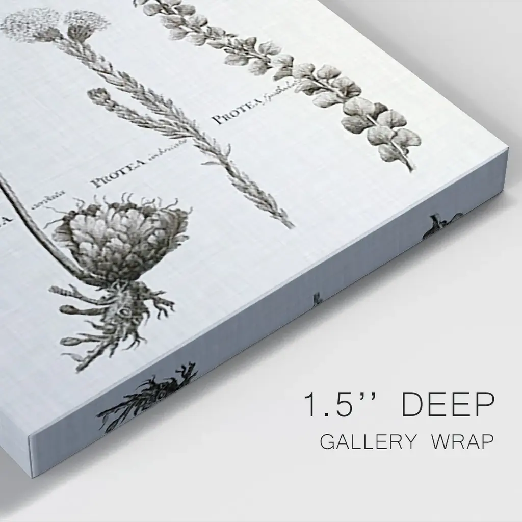 Black & White Protea on Linen II Premium Gallery Wrapped Canvas - Ready to Hang A premium hand stretched gallery wrapped canvas print created to last. Featuring a beveled a solid wood stretcher bar, each piece comes ready to hand 6 SIZES AVAILABLE 8''X12'' - Overall Size 12''X18'' - Overall Size 18''X27'' - Overall Size 24''x36'' - Overall Size 32''x48'' - Overall Size 40''x60'' - Overall Size Each piece is made to order. Built to Last Each piece comes ready to hang Solid wood stretcher Fade and Water resistant Made domestically