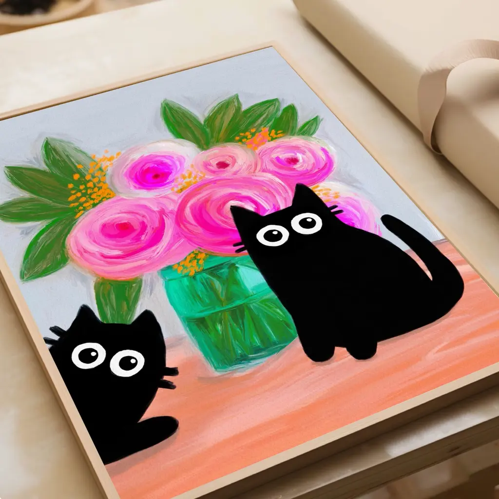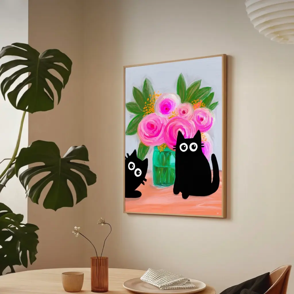 Black Cats And Roses - Art Print - LargeIllustrated by Maria. This print is perfect for all cat lovers alike! Printed in the U.K.Printed on premium matte, fine art, archival paperPaper weight: 230 gsmSold without a frame.