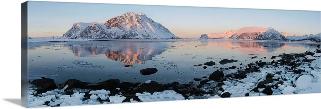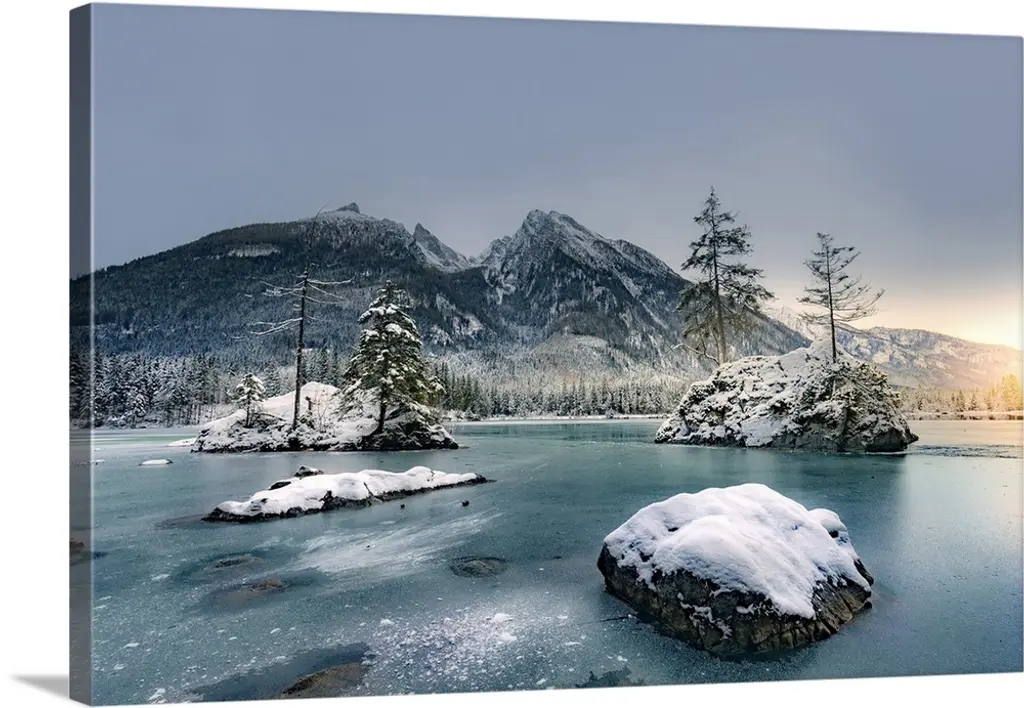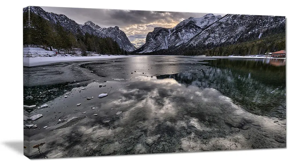 The Black Icy Mountain Lake with Snow canvas art print is sure to make an impression on anyone who sees it. This artwork is gallery wrapped around a 1-inch solid wood frame and arrives carefully packaged and entirely ready to hang on the wall. Design Art only uses the highest resolution and pigments to ensure a crisp colorful print that is never faded or pixelated. This artwork is sure to be a conversation starter in any home or office.