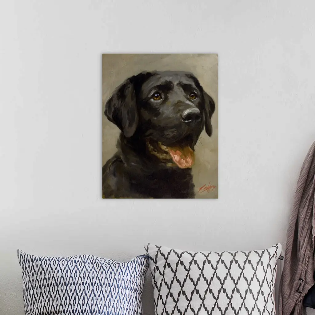 Contemporary painting of a black Labrador retriever.