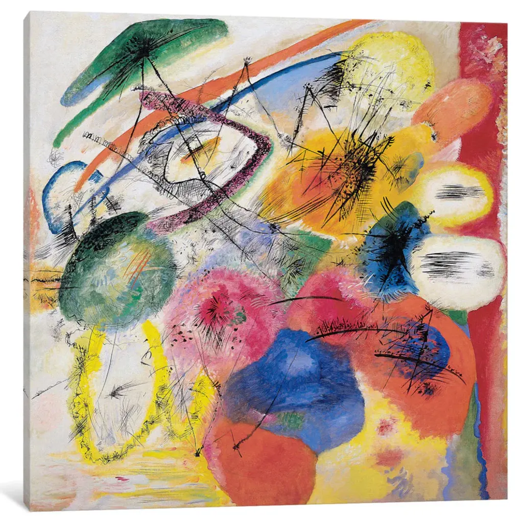 The artwork is crafted with 100-percent cotton artist-grade canvas, professionally hand-stretched and stapled over pine-wood bars in gallery wrap style - a method utilized by artists to present artwork in galleries. Fade-resistant archival inks guarantee perfect color reproduction that remains vibrant for decades even when exposed to strong light. Add brilliance in color and exceptional detail to your space with the contemporary and uncompromising style of iCanvas. Orientation: Square Shape: Square Artist: Wassily KandinskySize: Multiple sizes availableProduct Type: Gallery wrapped canvas artNew: Ready to be displayed right out of the box, including free hanging accessories and instructions for a quick and easy hanging process that achieves the best positioning results.Quality Wood Bars: Shrink-resistant wooden-bar frame with tensioning wedges that allow for tightening of the canvas from the reverse side.Dependent and Fast: Produced by the largest US canvas art supplier.