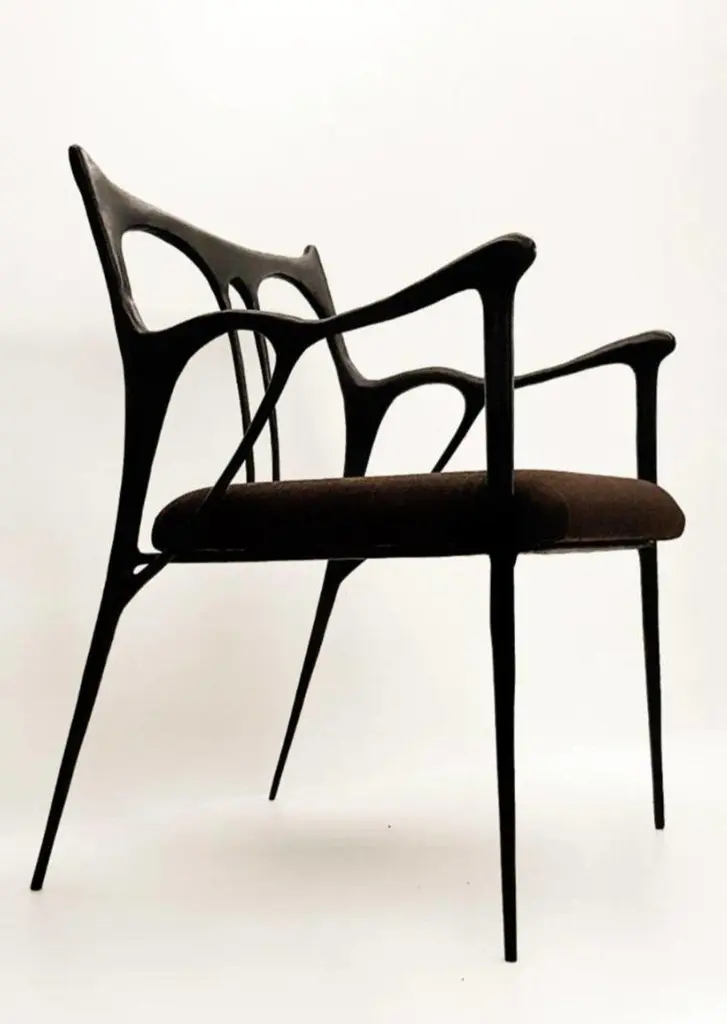 Black Painted Brass Sculpted Chair With Seat Upholstered By Misaya