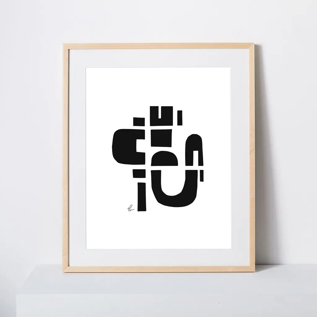 Linework inspired by ancient African design. The bold, dimensional composition. High-quality print of an original collaged piece.