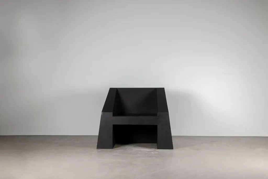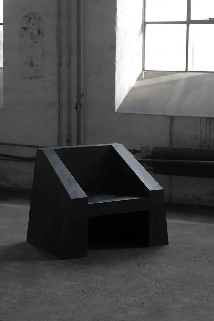 Black Plywood, Sculpted Block Form Contemporary Chair By Lucas Tyra Morten